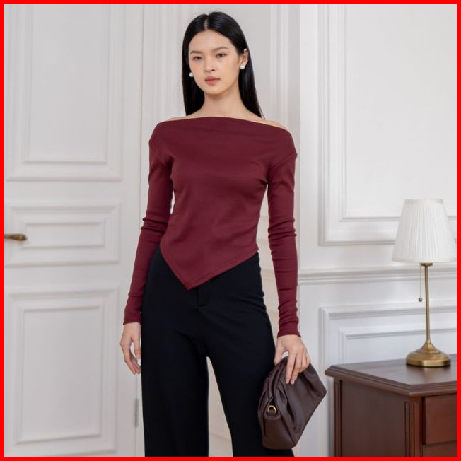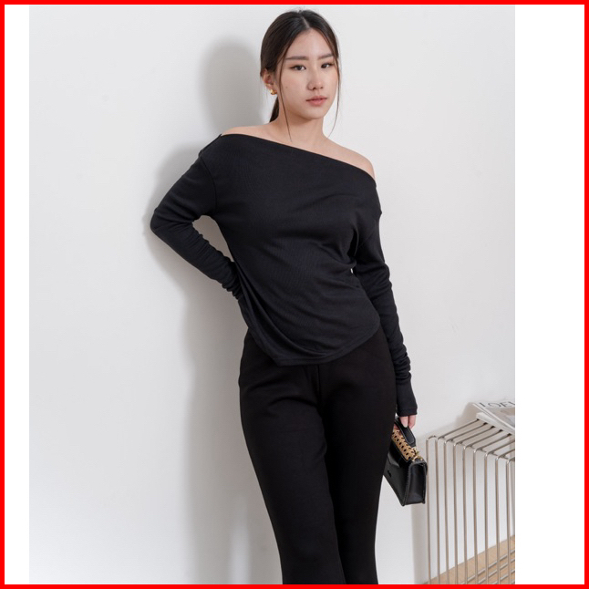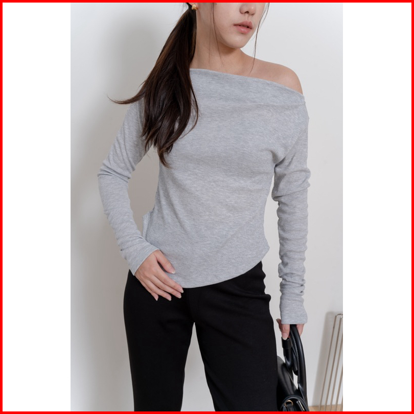 Aijo New Coll Blossom Sabrina Longsleeve - Atasan Lengan Panjang Rib Wanita