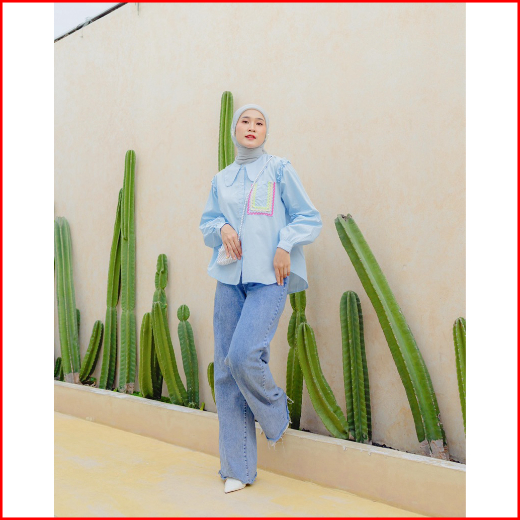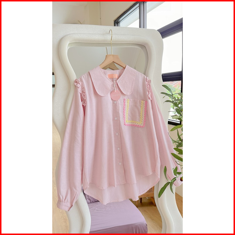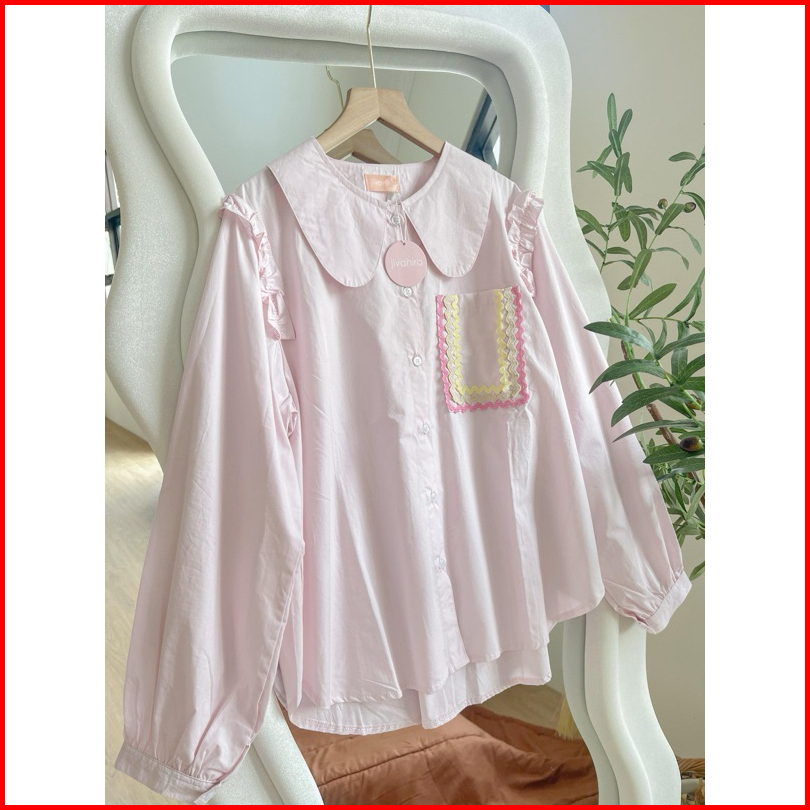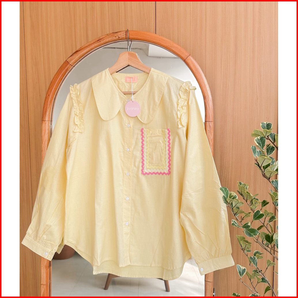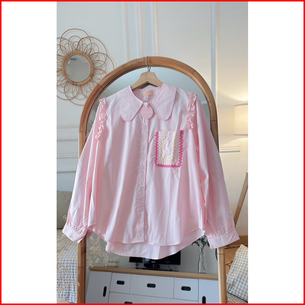 Atasan Wanita Rufle Biku Biku Blouse Katun Poplin Wanita Terbaru Pink Korean Style