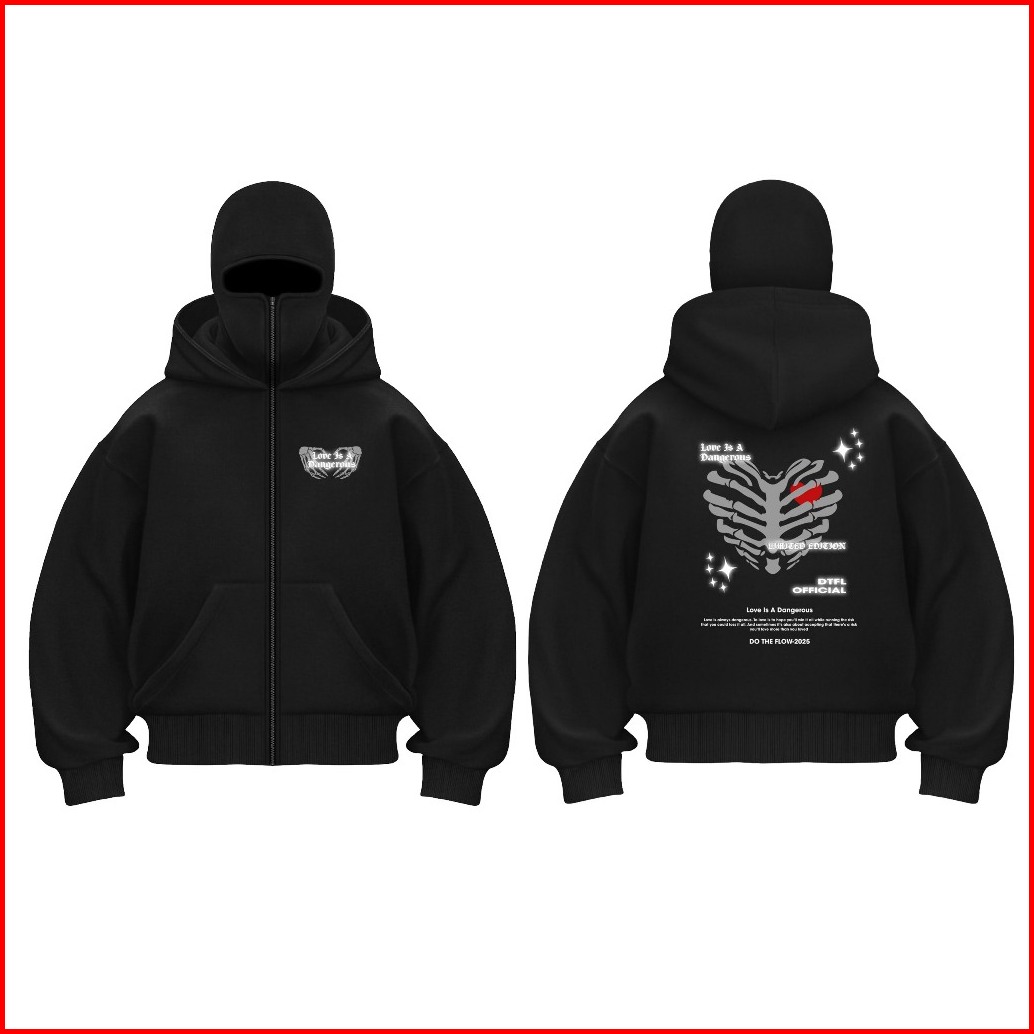 Do The Flow Hoodie Balaclava Reflektif Dangerous Zipper Jaket Hitam