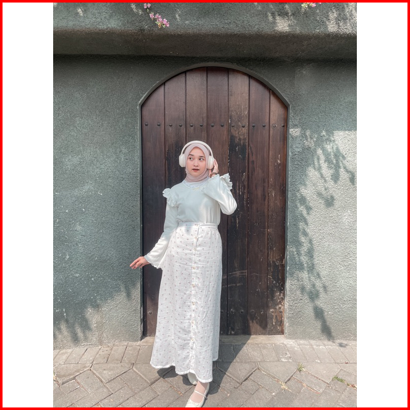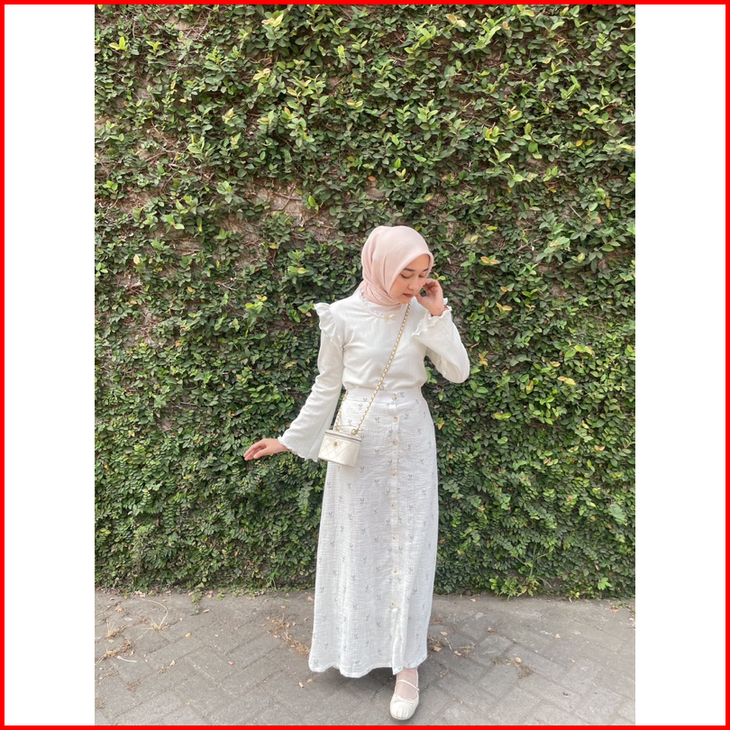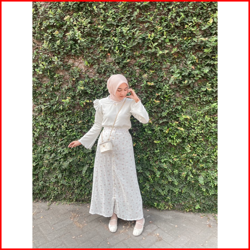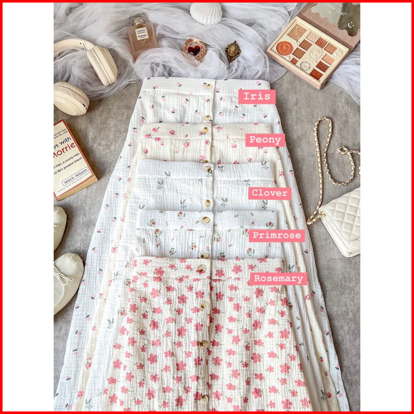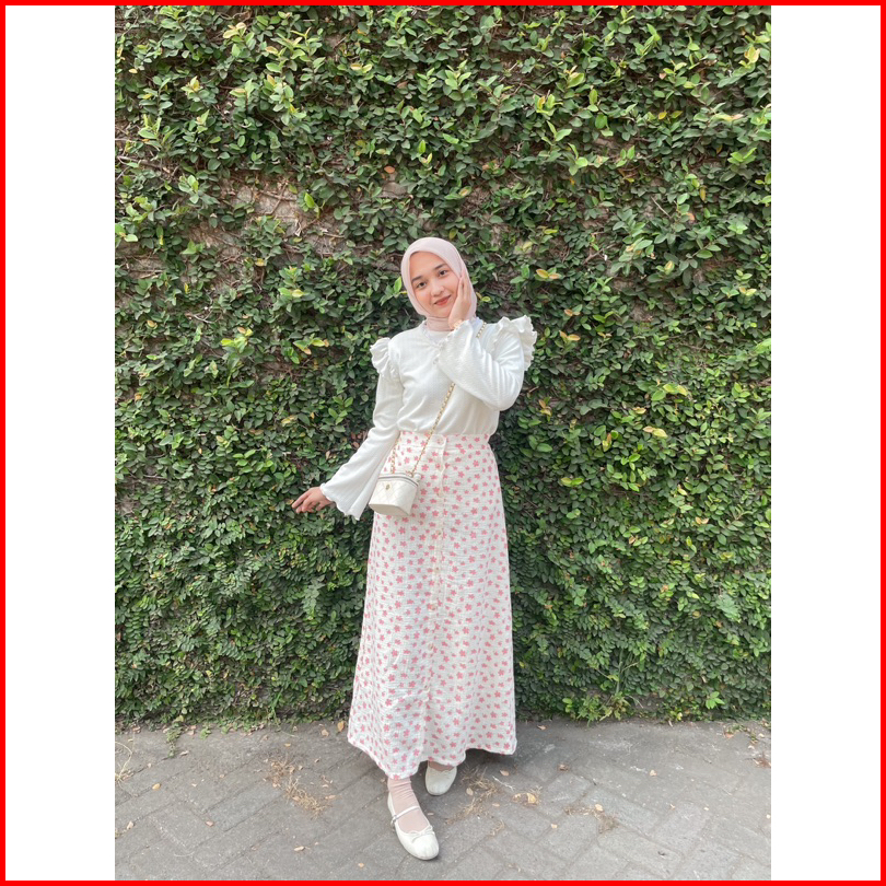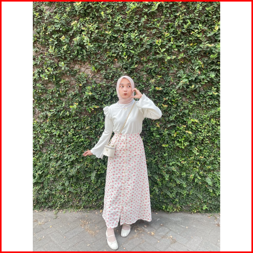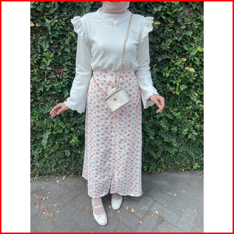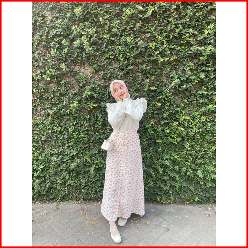 Adeline Skirt By Kimka Hijab Rok Korea Model A-line Motif Floral Bahan Katun Muslin Rok Floral Korean Style Wanita Flora