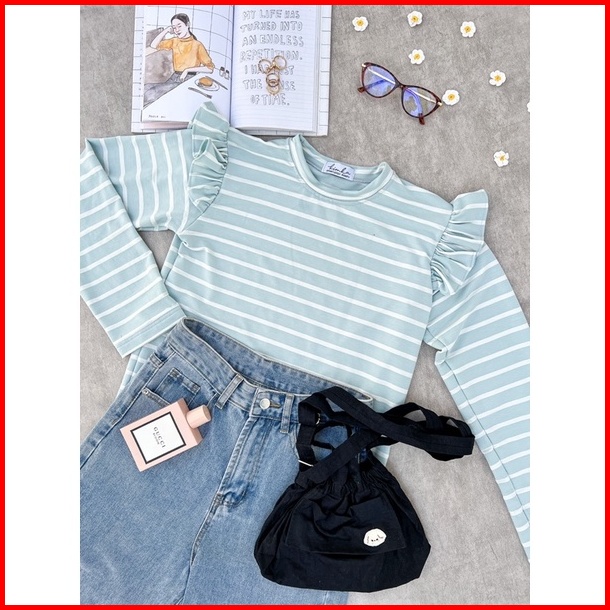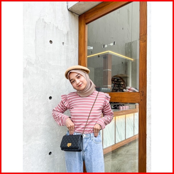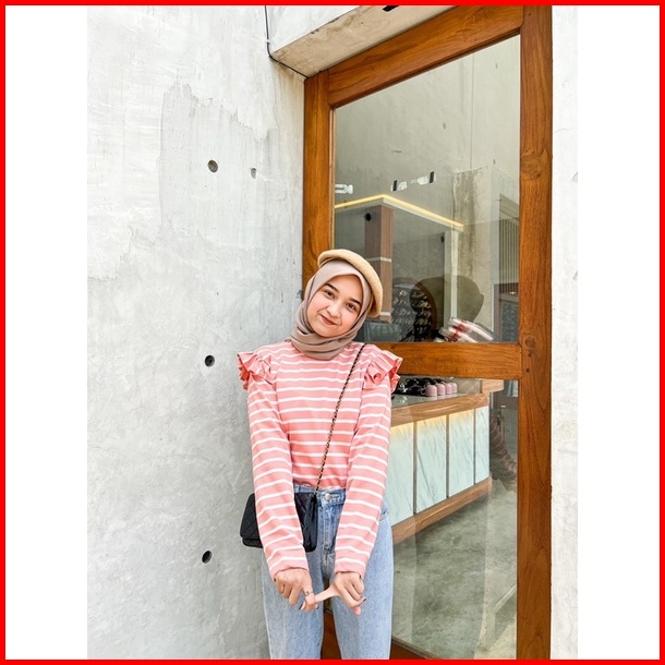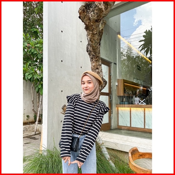 Kana Blouse Atasan Cantik Casual Wanita Kaos Garis Terlaris