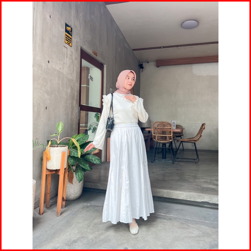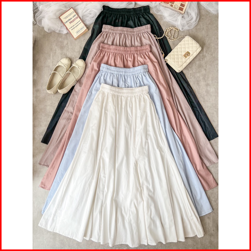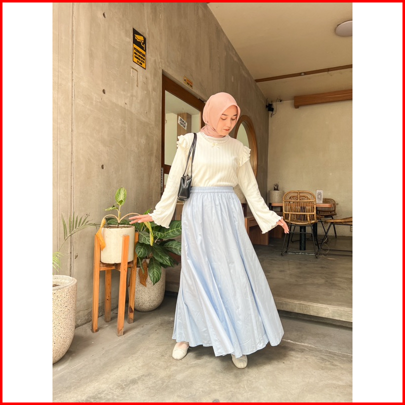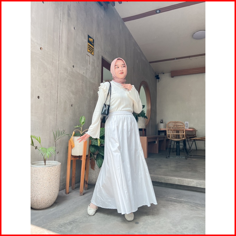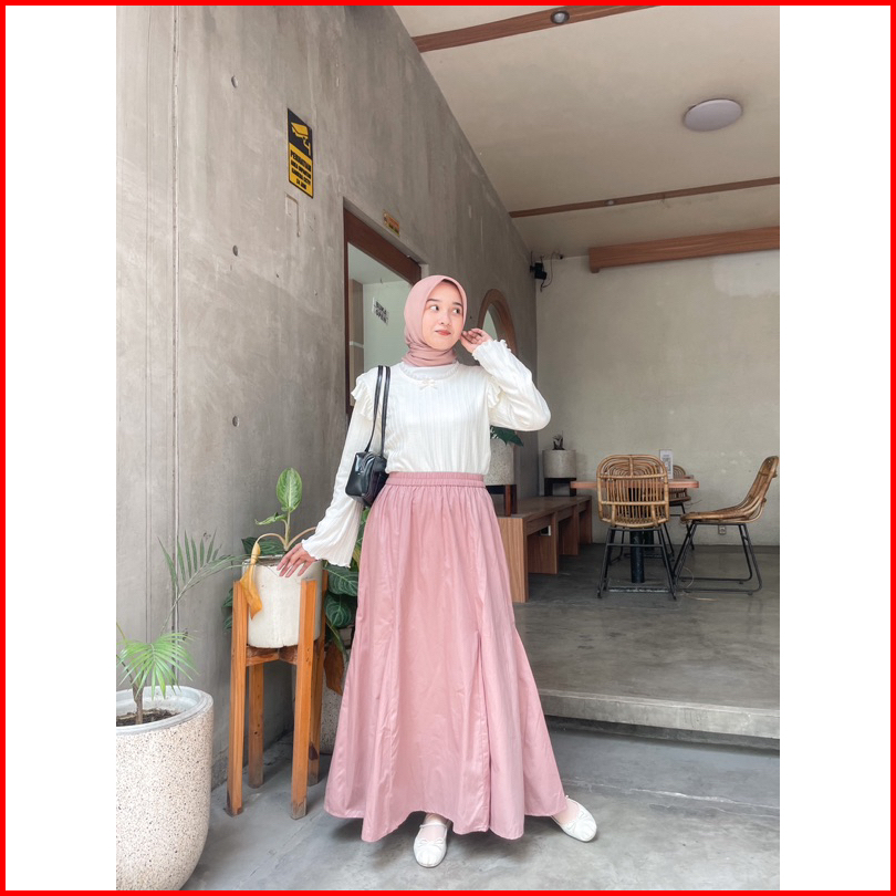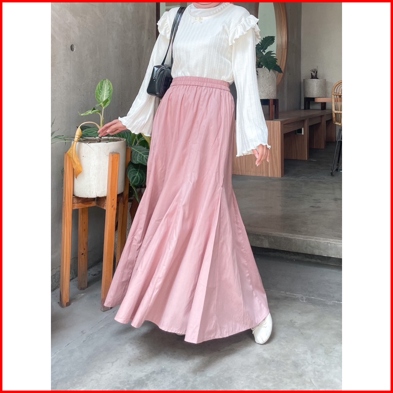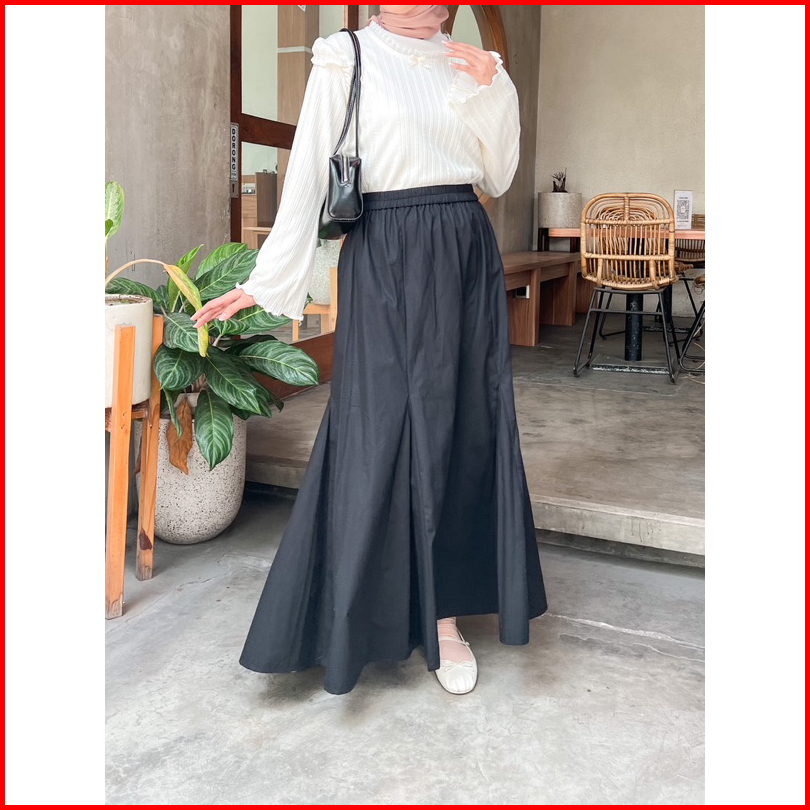 Annette Poplin Skirt By Kimka Hijab Rok Poplin Kasual Cantik Korean Style Rok A-line Lebar Bahan Katun Nyaman Rok Wanita