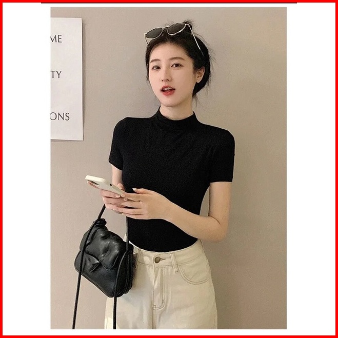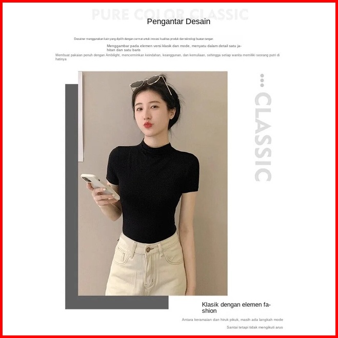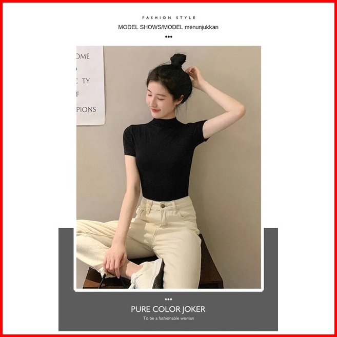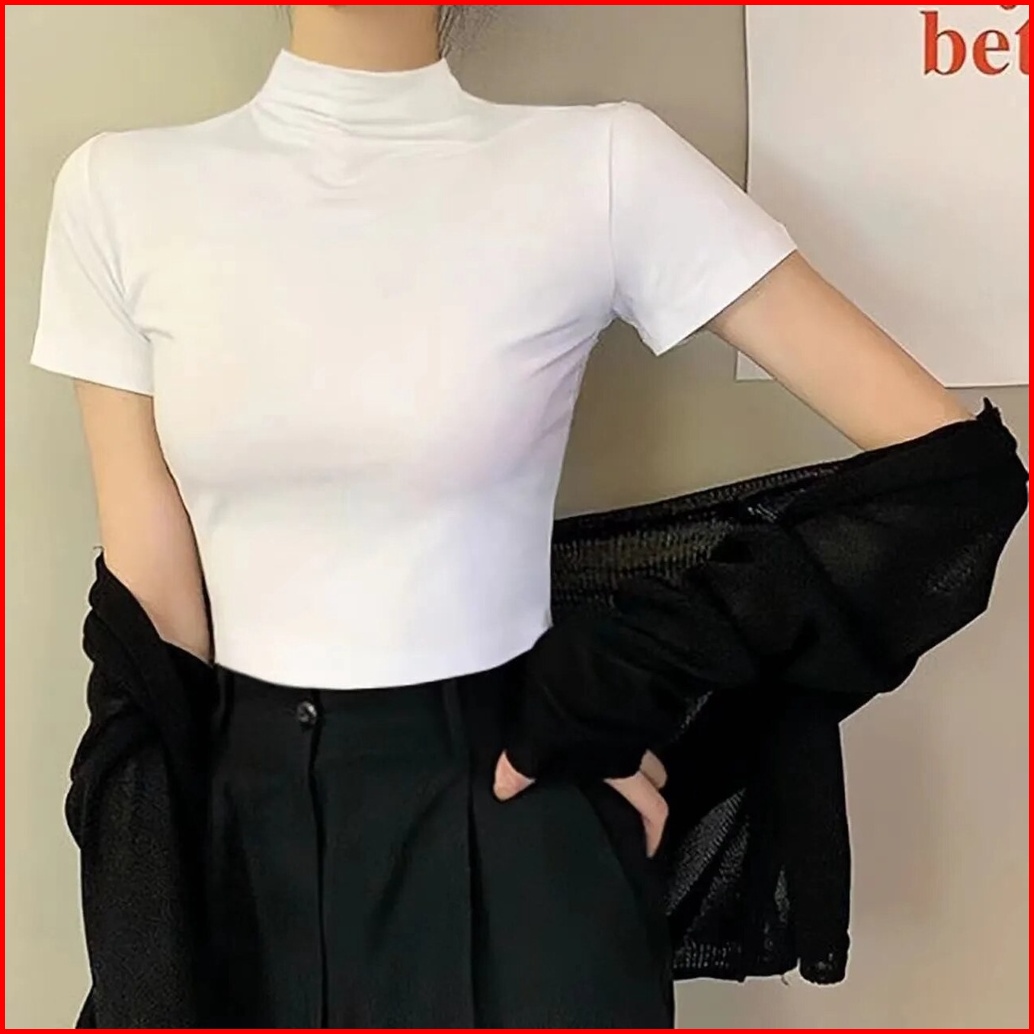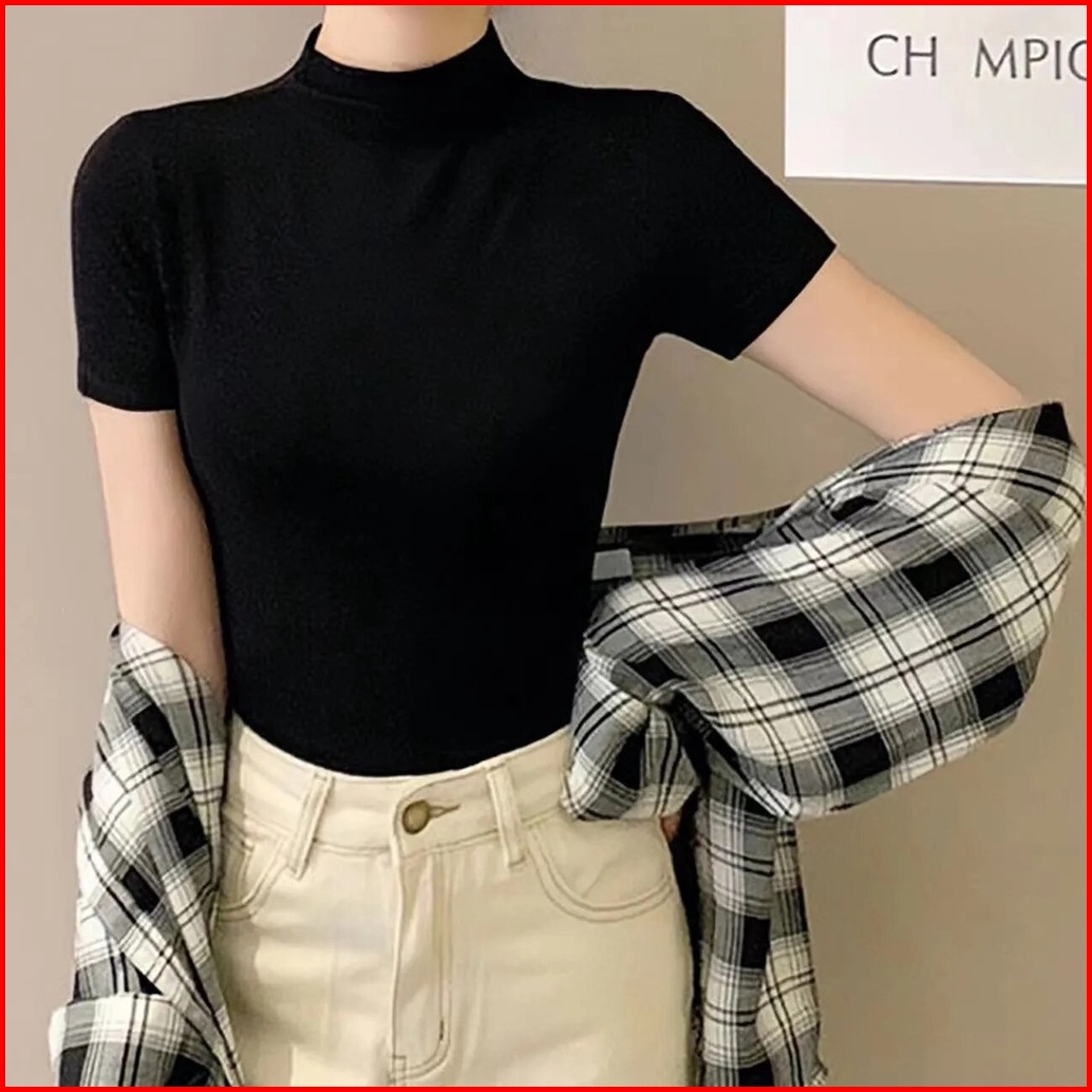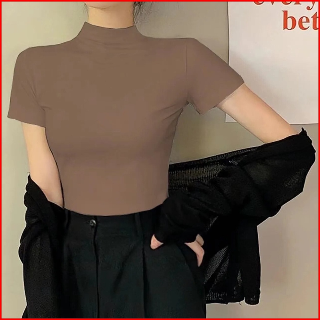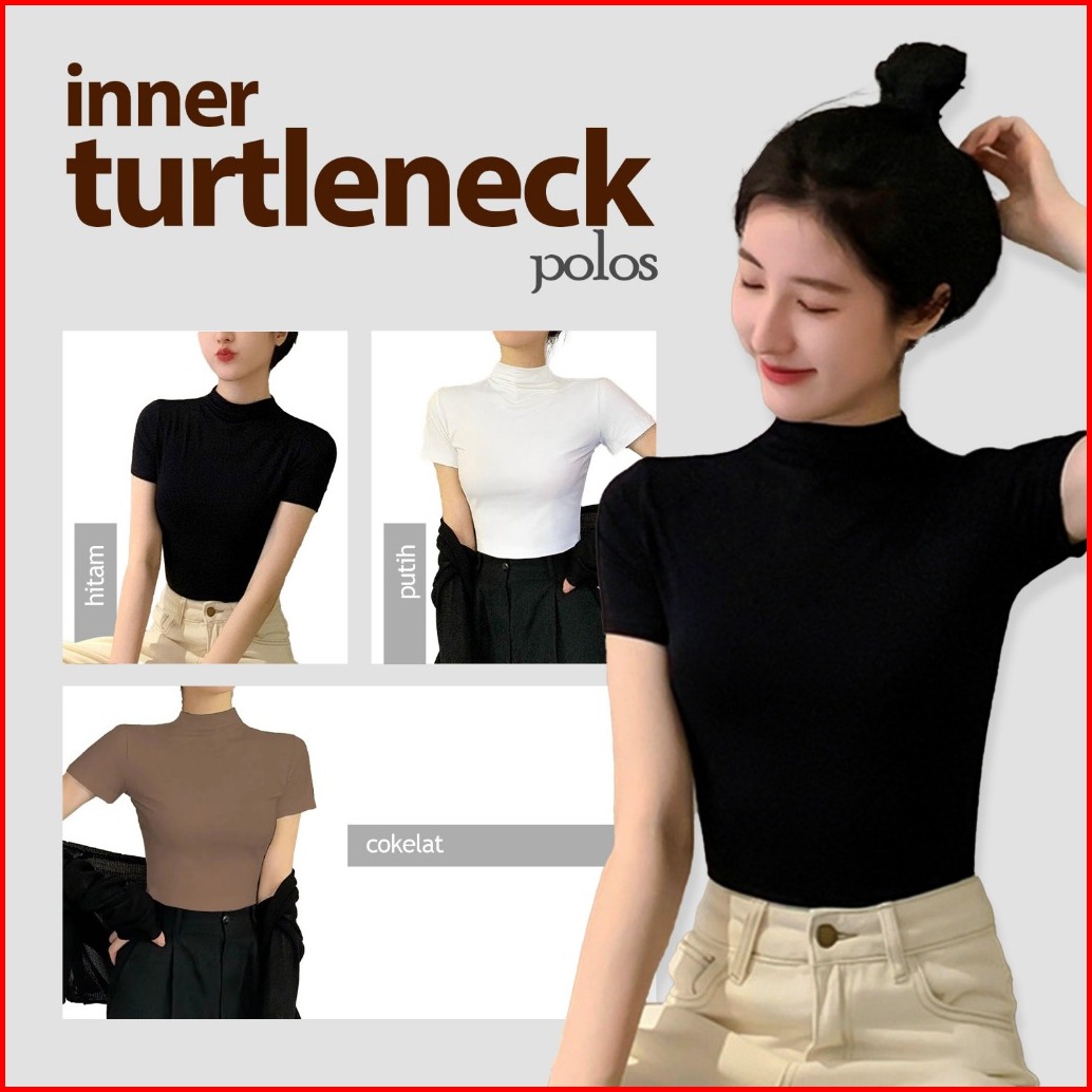 Inner Turtleneck Wanita Lengan Pendek - Atasan Basic Nyaman Untuk Layering Bahan Katun Elastis Melengkungkan Tubuh Viole