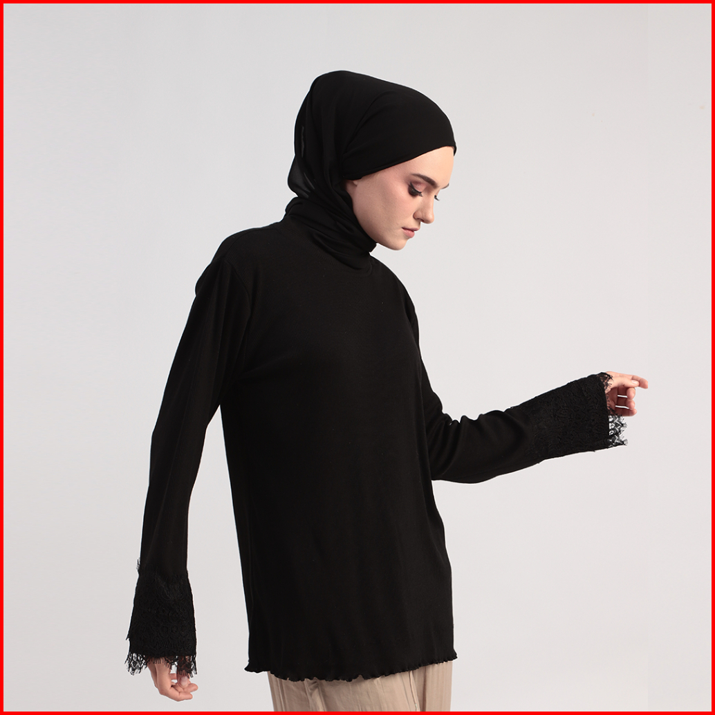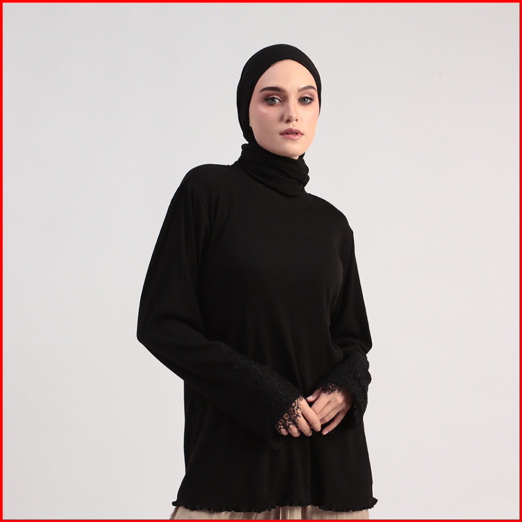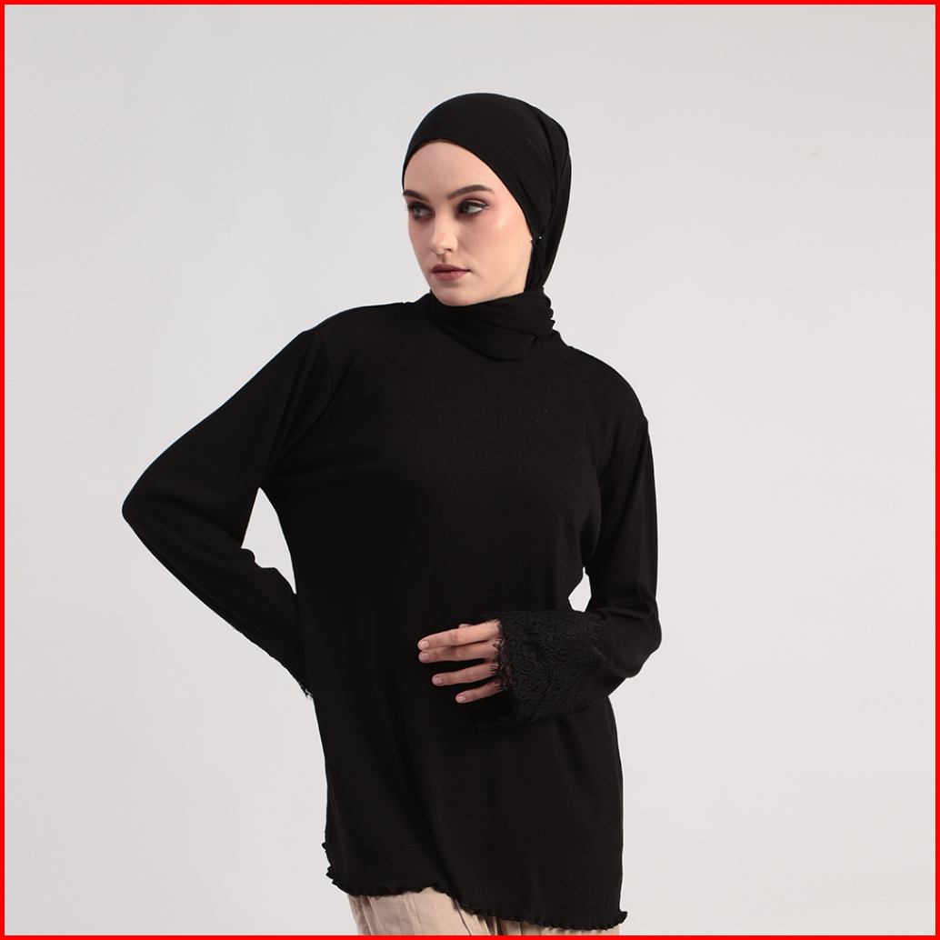Blouse Basic Knit Rib Stretch Kaos Knitting Katun Renda