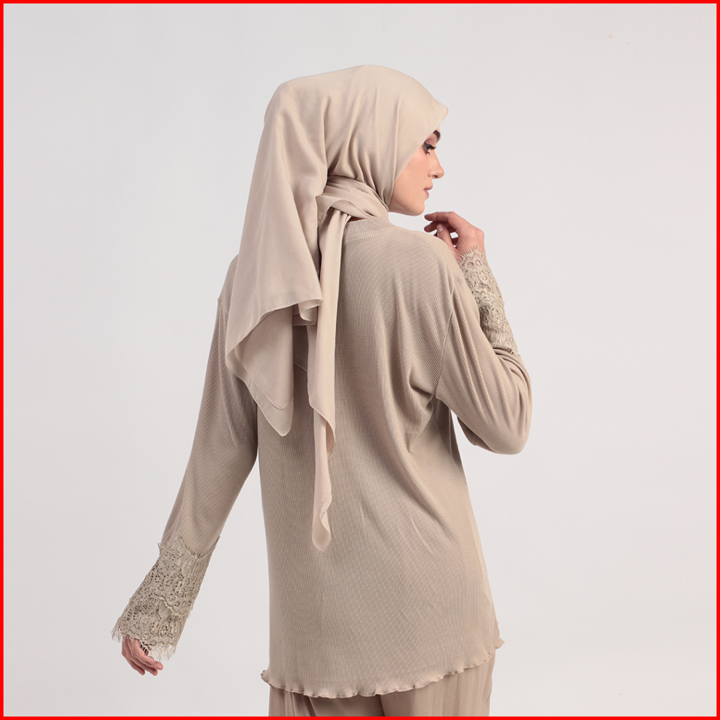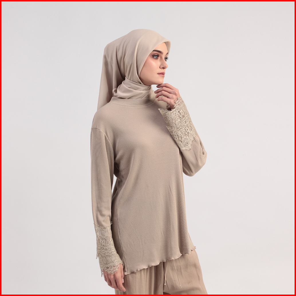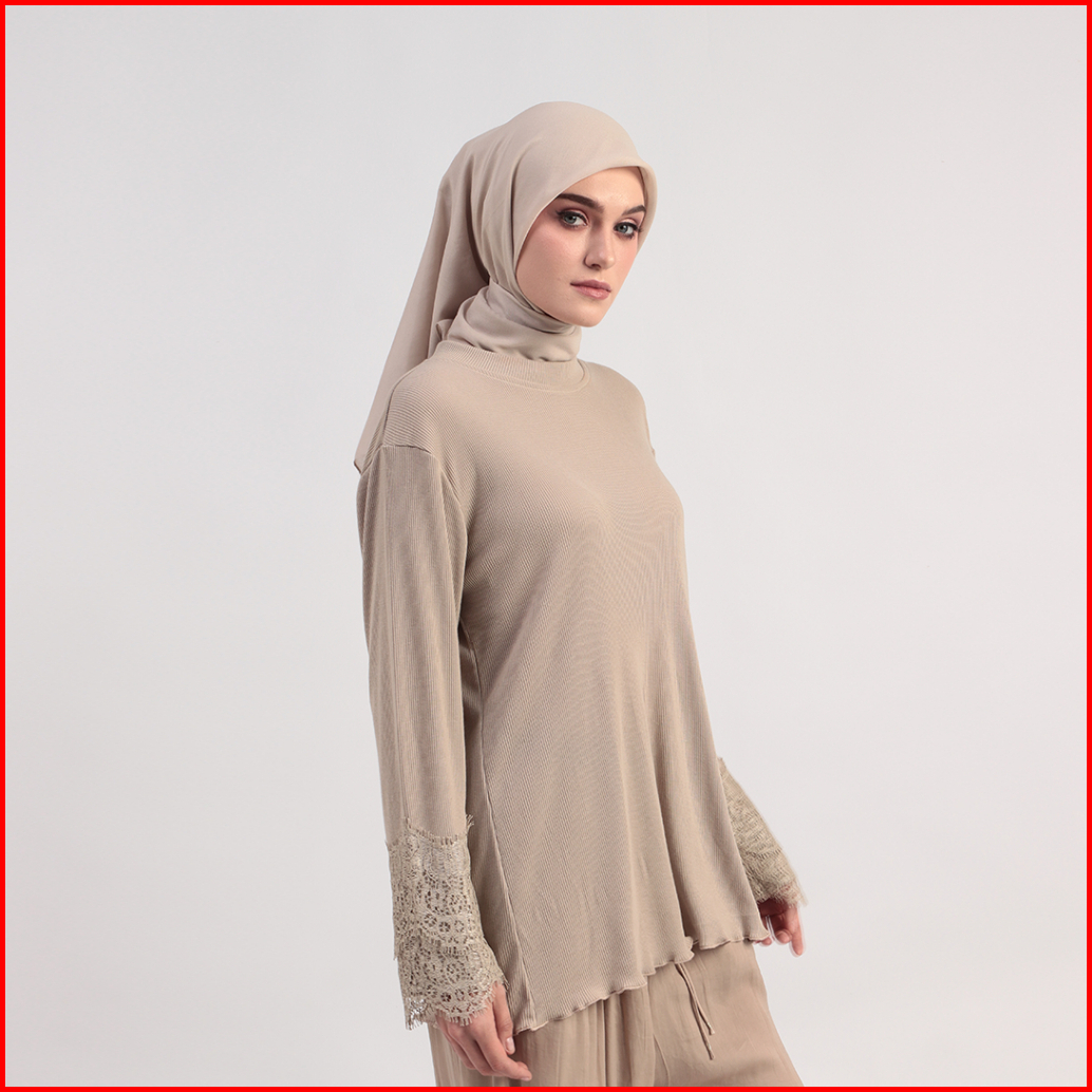 Blouse Basic Knit Rib Stretch Kaos Knitting Katun Renda