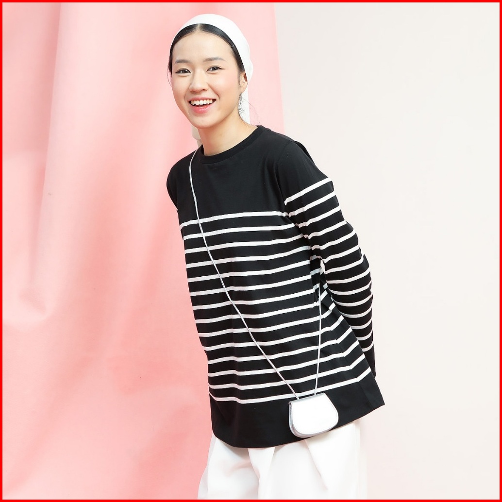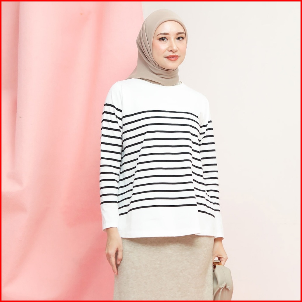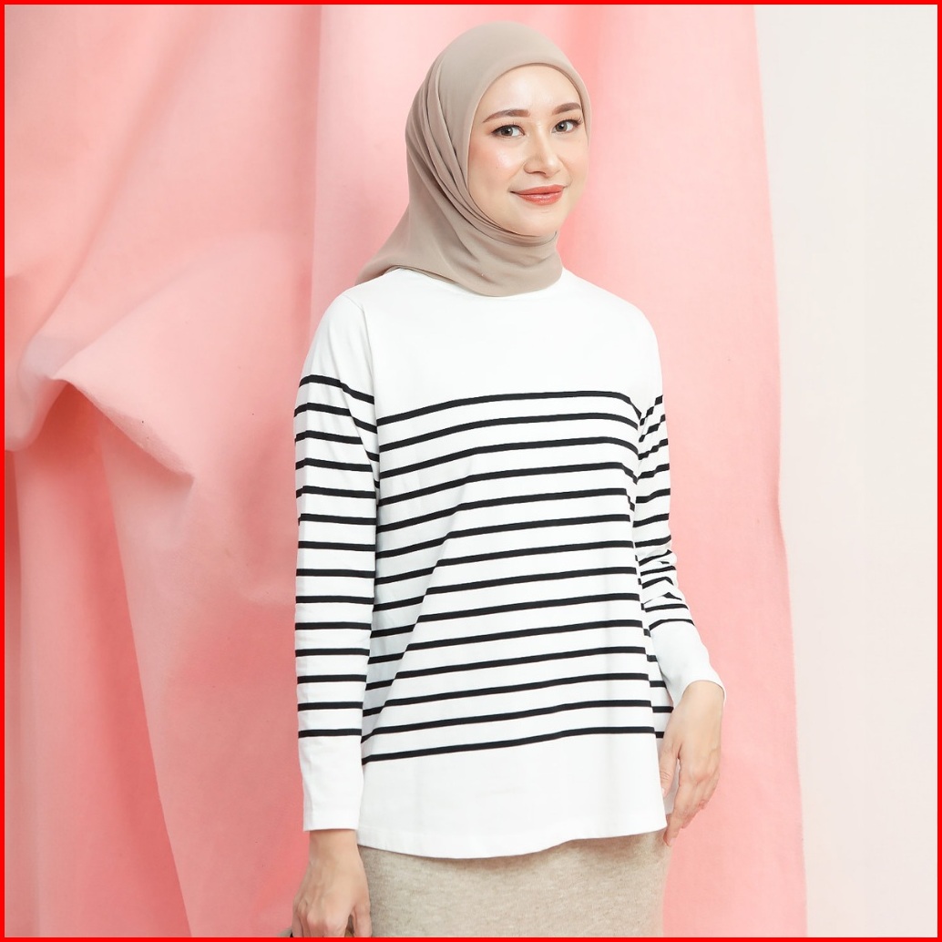 Hijabchic Aisly Stripe Tops - Kaos Daily Garis Combed Lembut Casual Simple