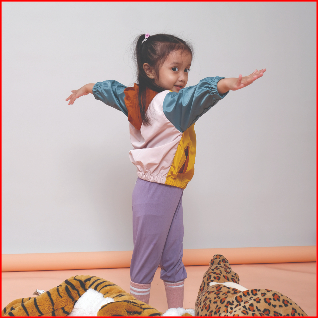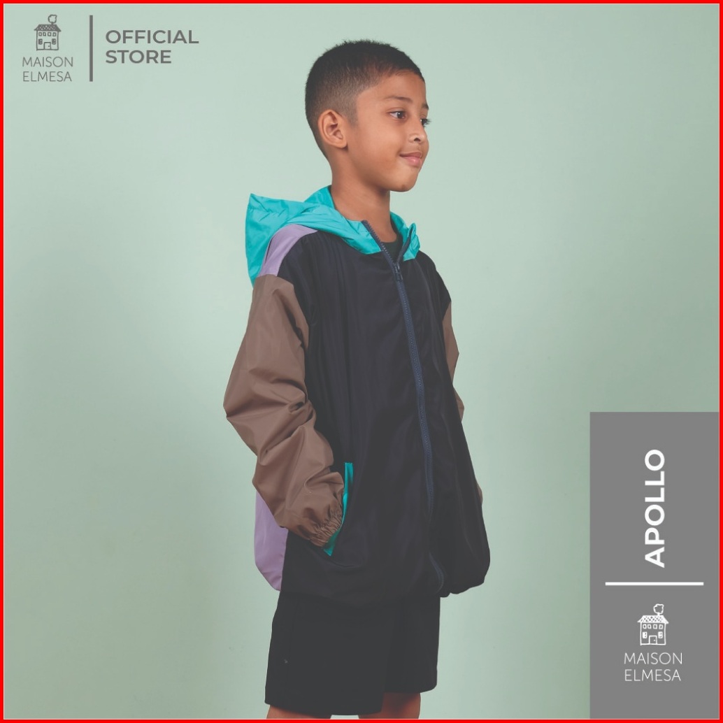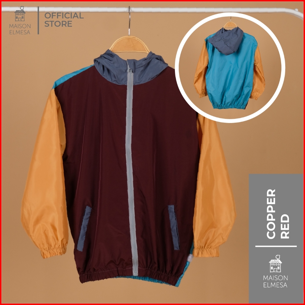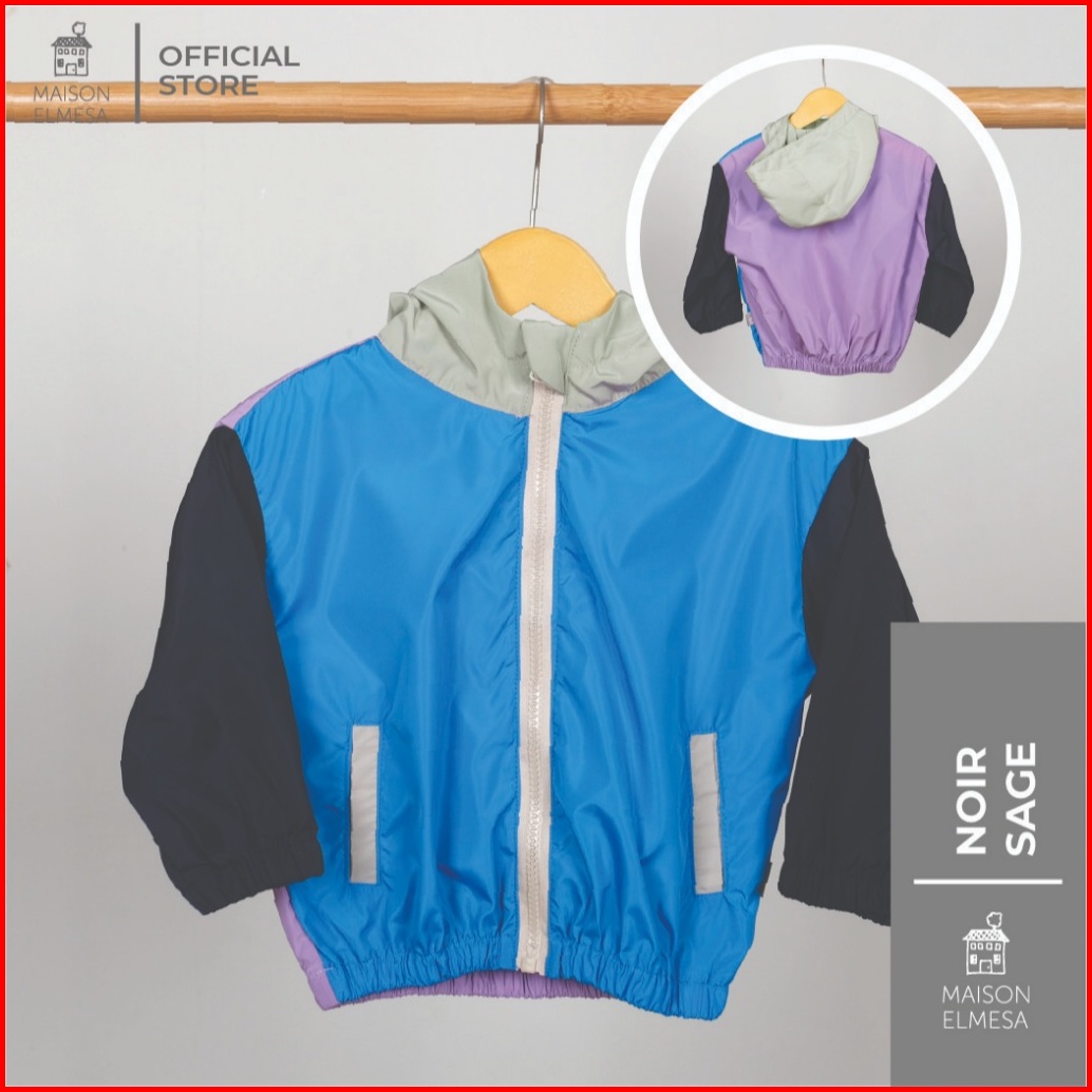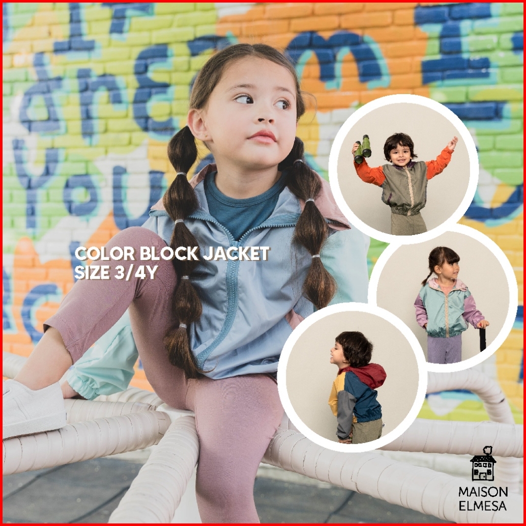 Maison Elmesa Jacket Color Block - Size 3 4y Water Repellent Bisa Tambah Nama - Jacket Anak Parasut