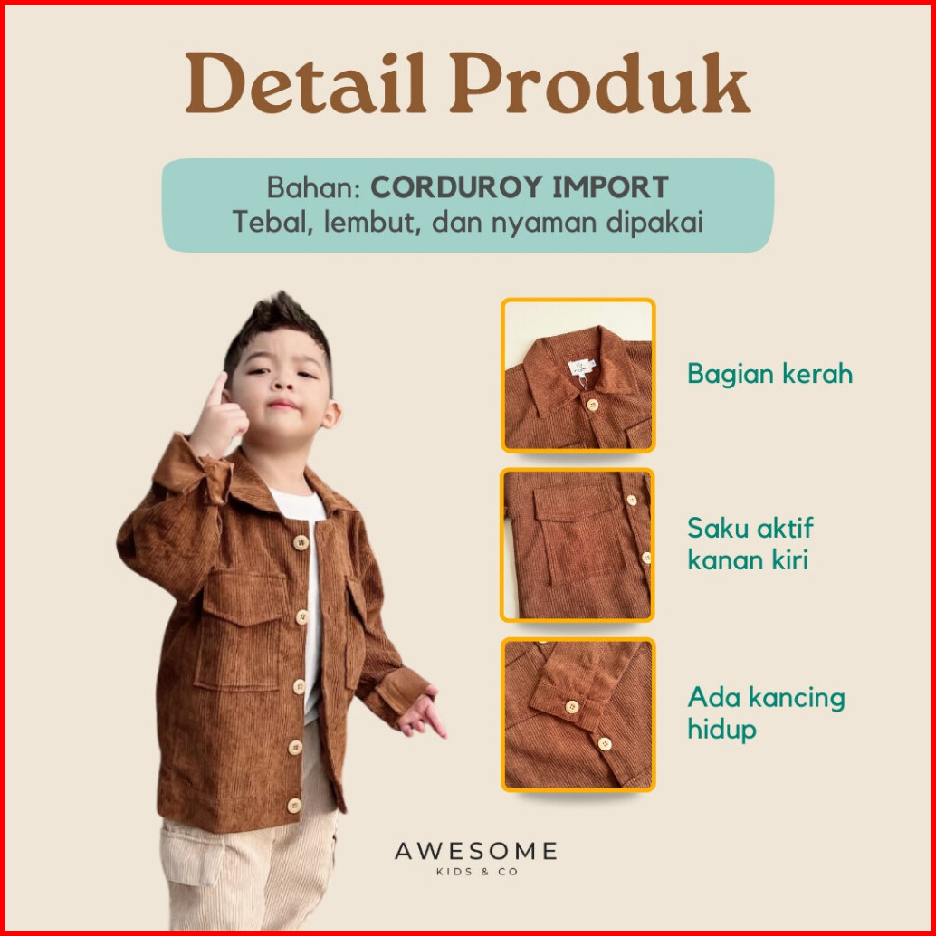 Awesomekids Jaket Anak Trucker Korean Cordy Jacket Corduroy Unisex Laki Perempuan