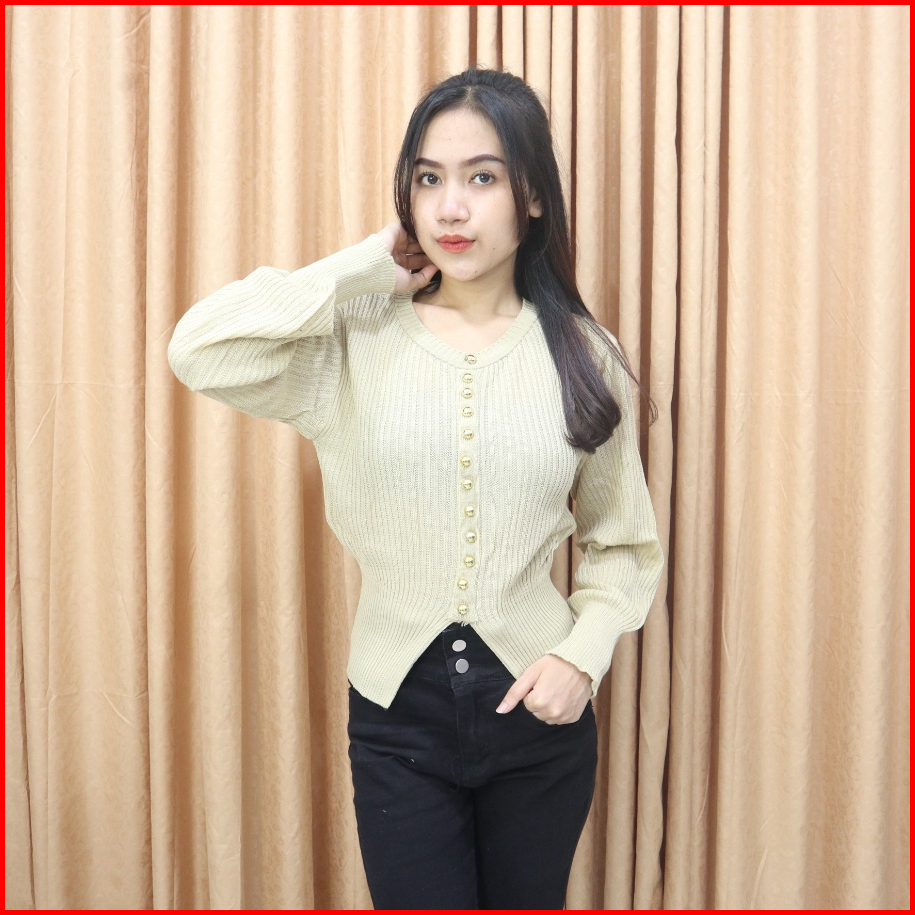 Atasan Rajut Oneck Lengan Panjang Wanita Kancing Mati Korean Style Kaos Top Baju Knit Wanita Basic Long Sleeve