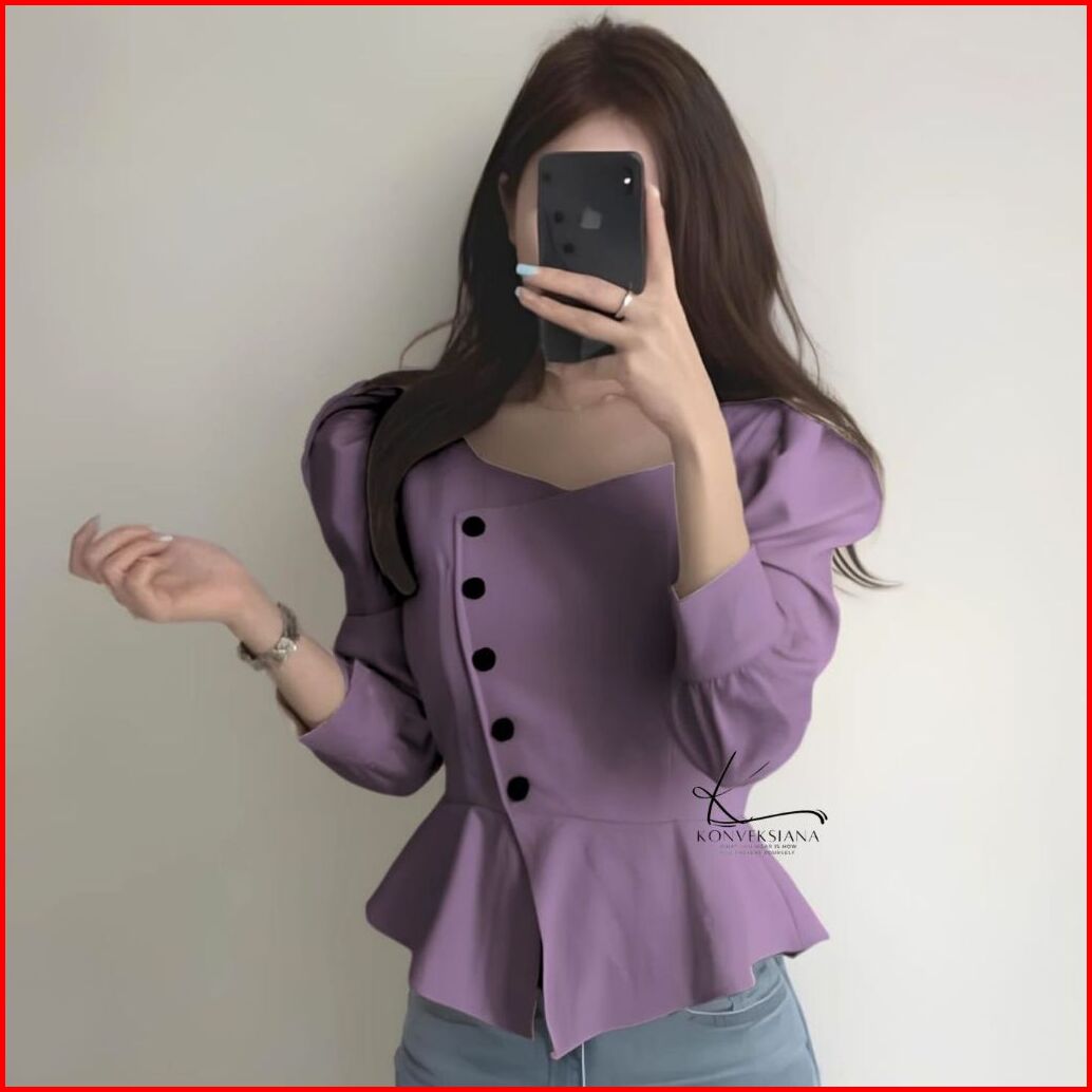 Konvksiana Yoana Kemeja Blouse Korean Atasan Wanita Polikatun Premium Style Korea Casual