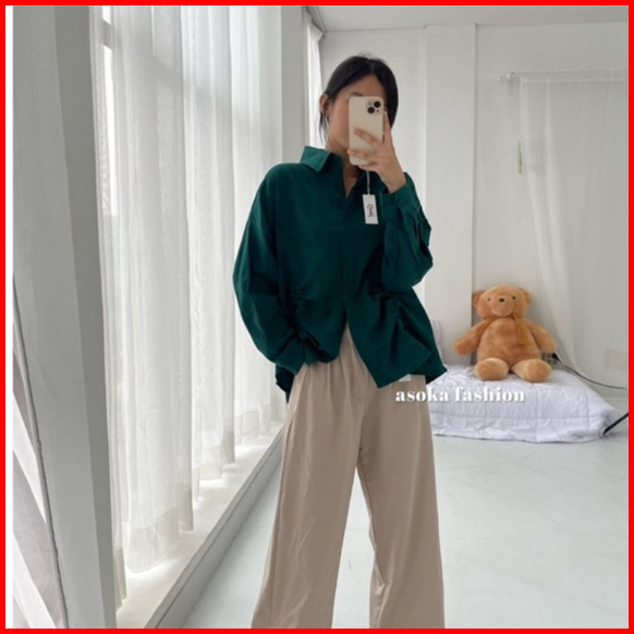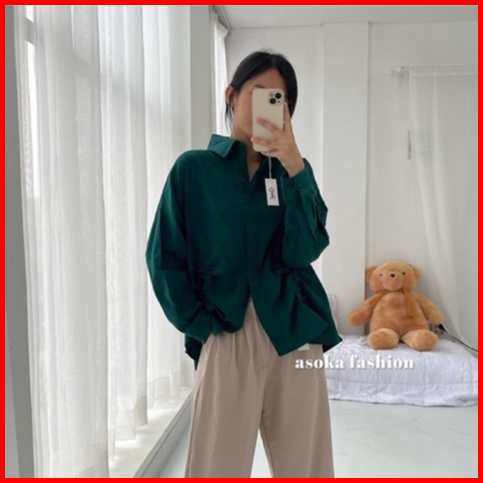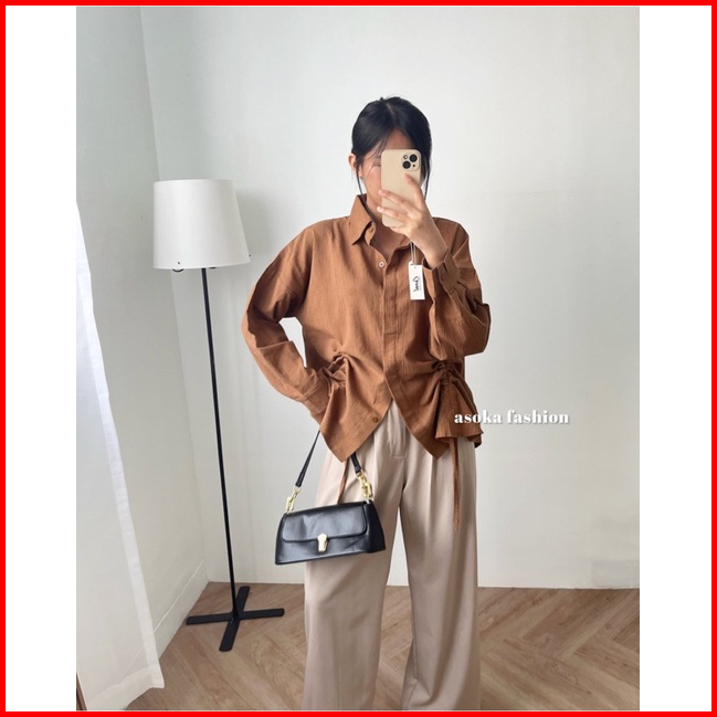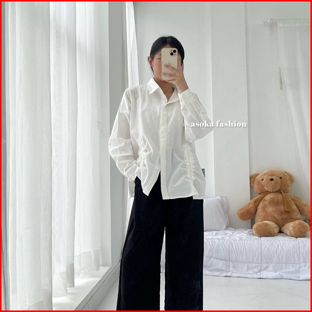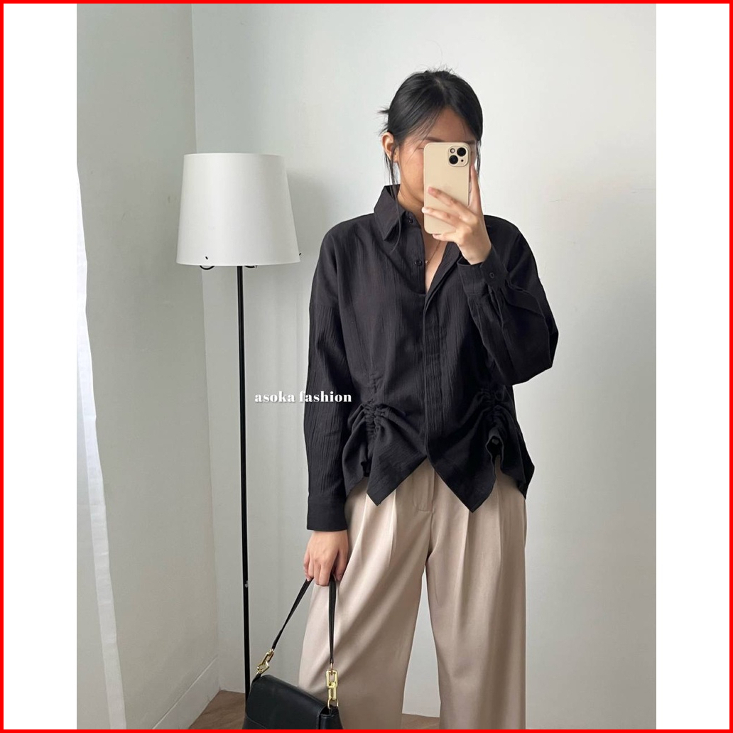 Olivia Kemeja Polos Wanita Serut Aktif Korean Style Baju Atasan Kasual Daily Wear Kekinian
