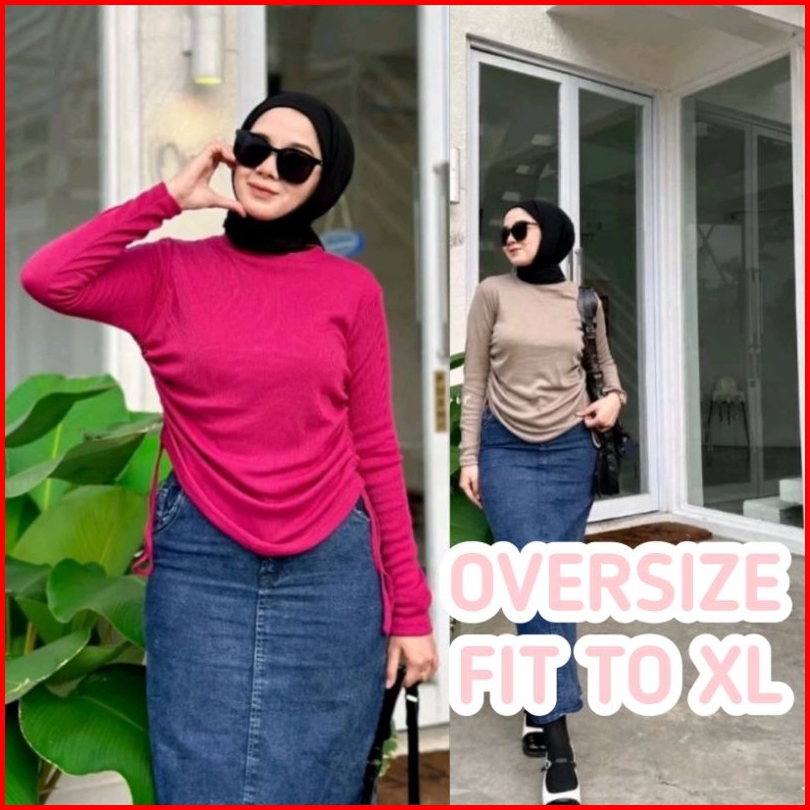 Vierra Blouse Serut Knit Rib Terbaru Serut Samping Atasan Knit Jumbo Terbaru Atasan Rib Wanita Jumbo Terbaru