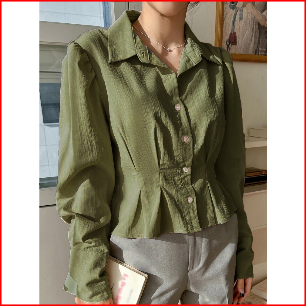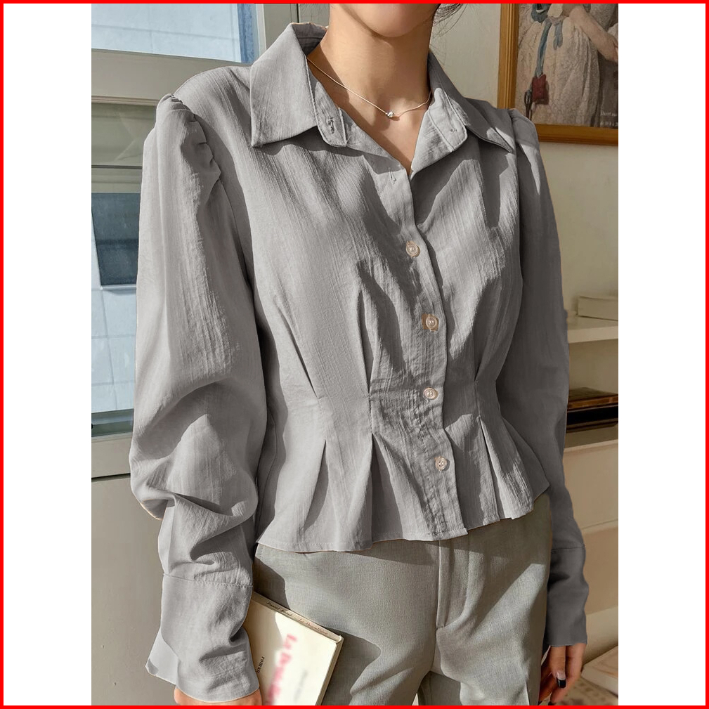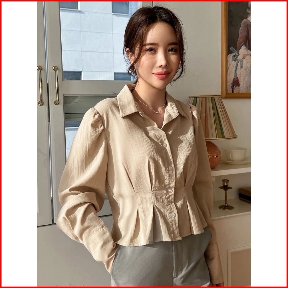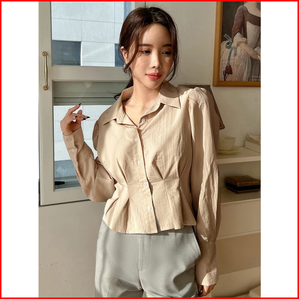 Baju Atasan Wanita Terbaru Blouse Crop Lengan Panjang Korean Style Kekinian Blus Kemeja Kerja Wanita Terbaru