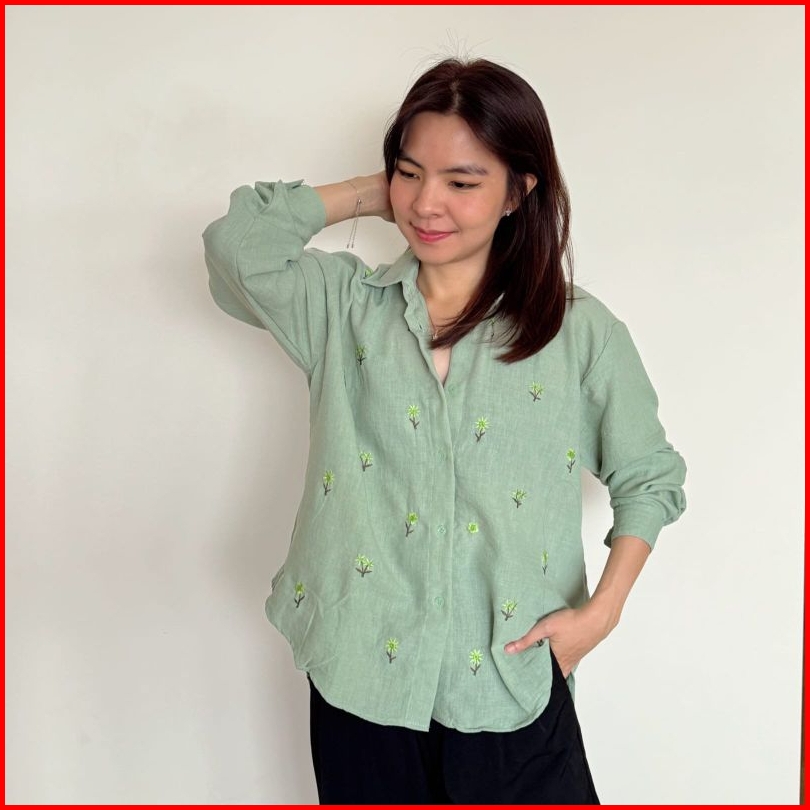 Atasan Wanita Blouse Oversize Kemeja Basic Matt Linen Rami