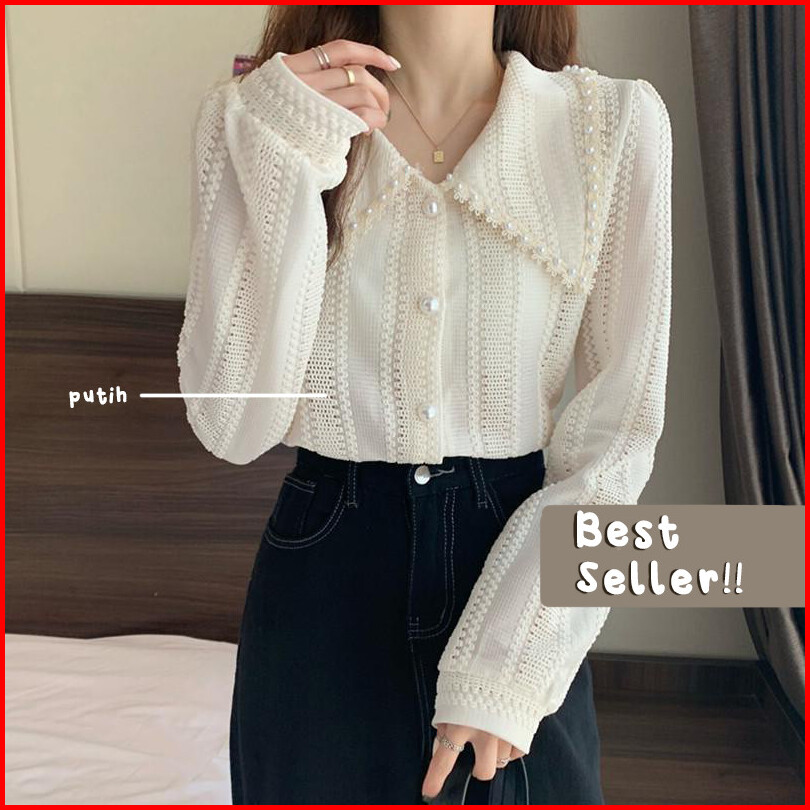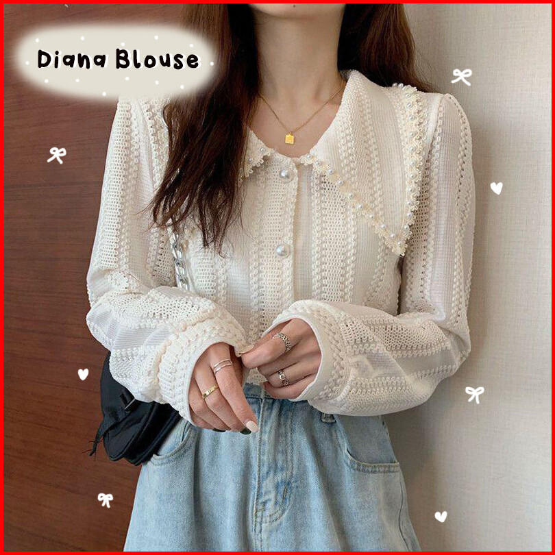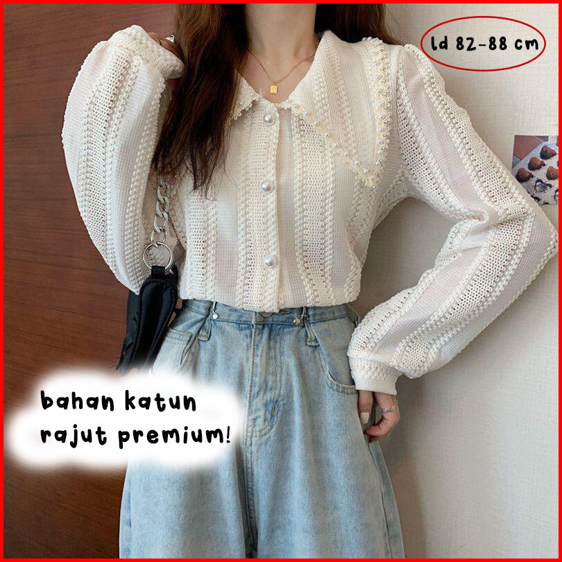 Maomao - Diana Blus Knit Atasan Blouse Kemeja Lengan Panjang Kantor Korean Ramadhan Muslim Hijab Ootd Lebaran Ramadan Ke