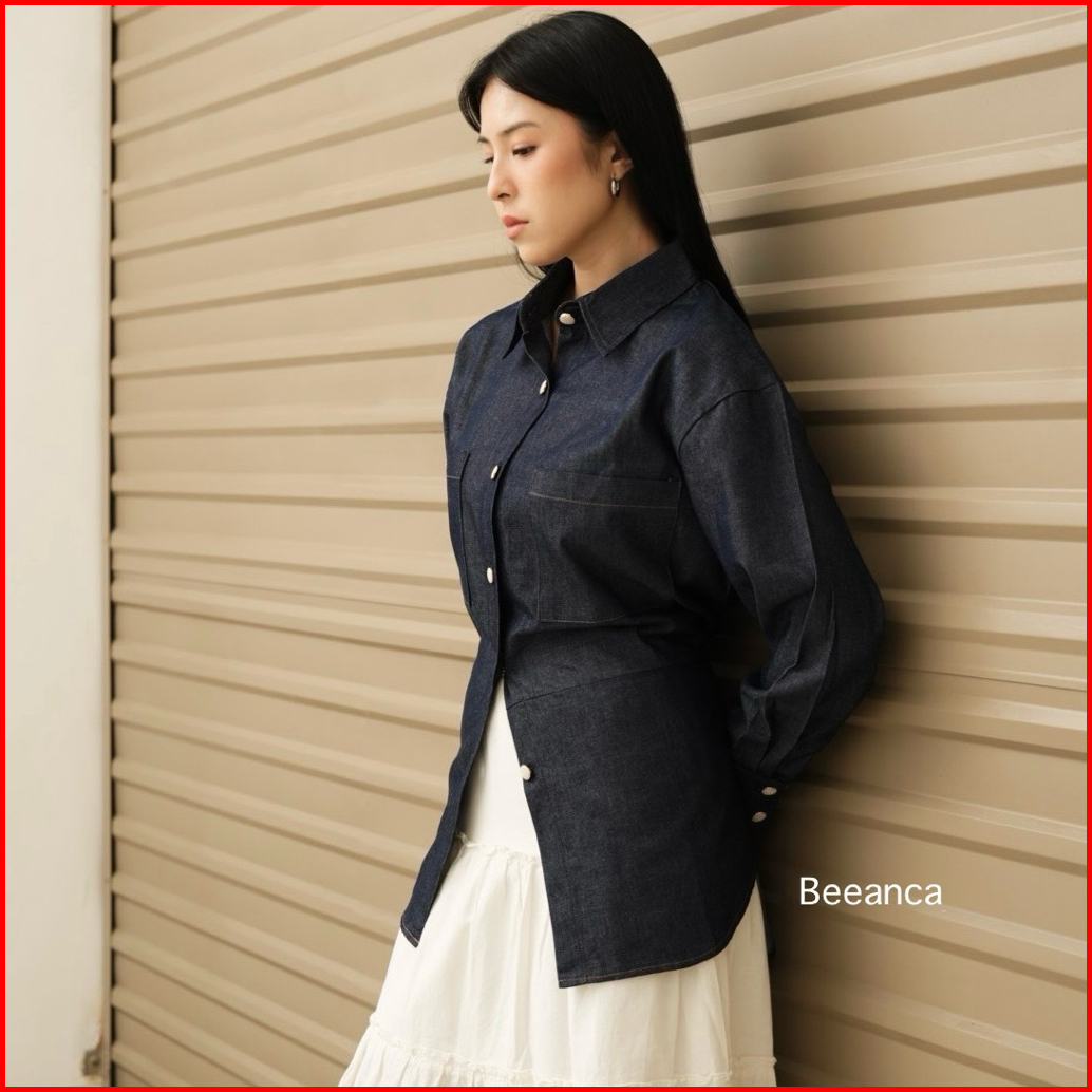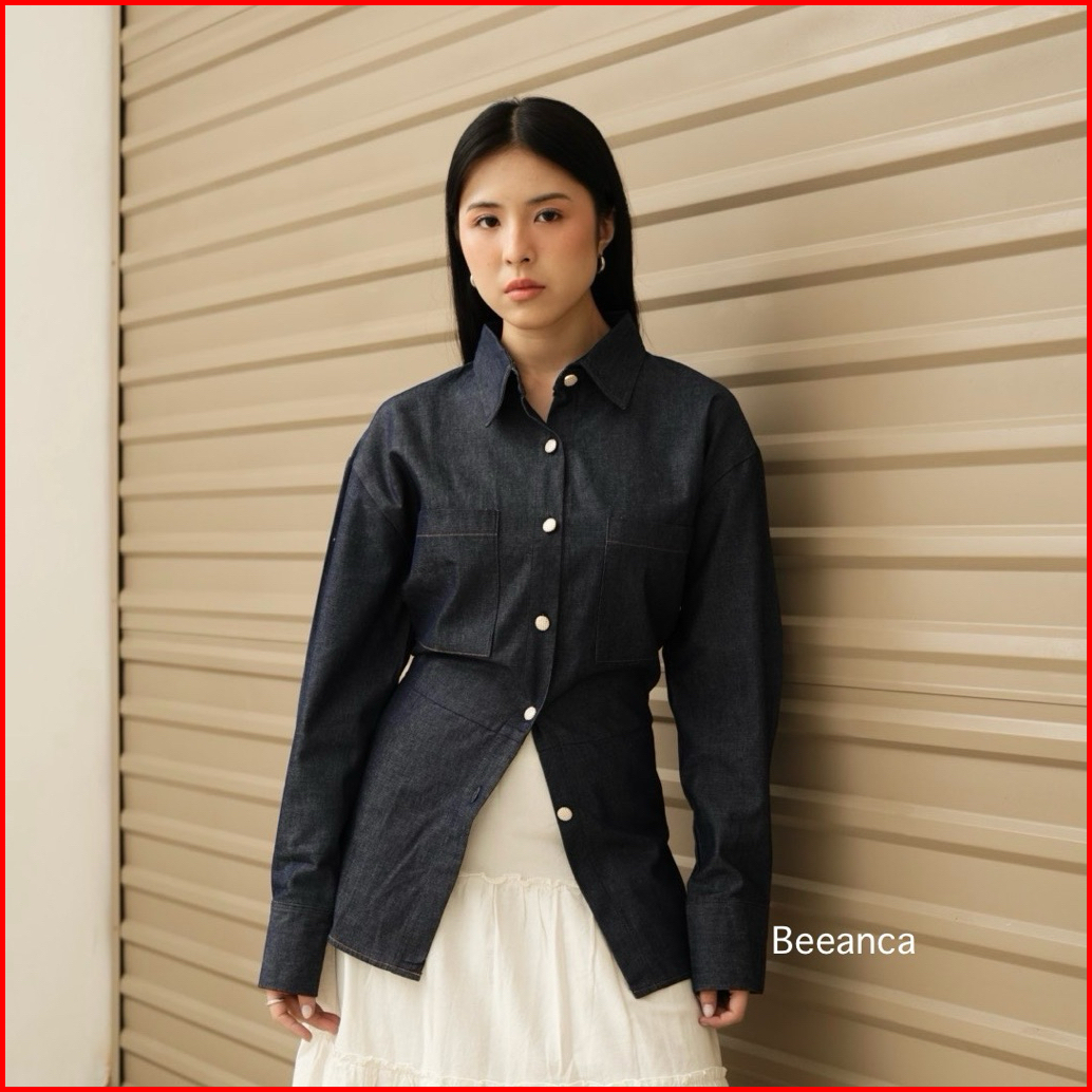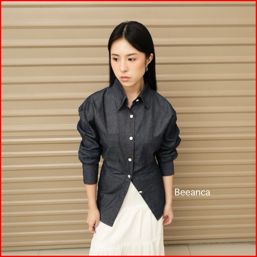 Beeanca - Alice Denim Blouse Atasan Wanita Denim Blouse Fitted Blouse Atasan Denim Blouse Korea Atasan Korea