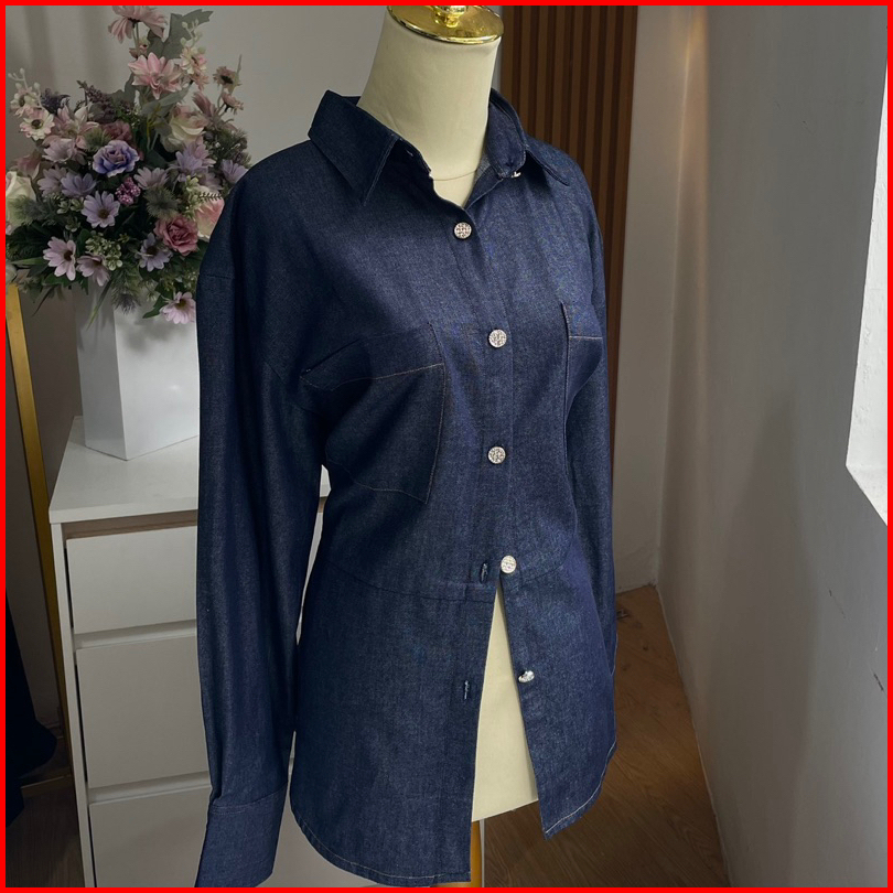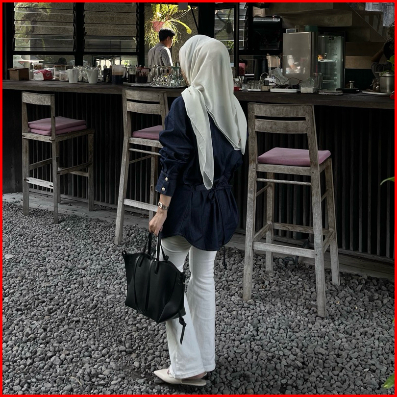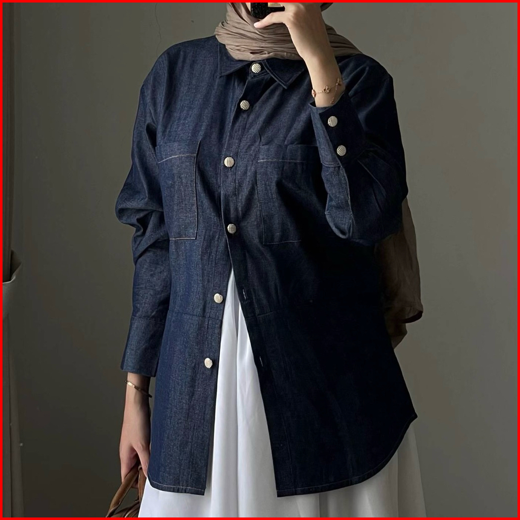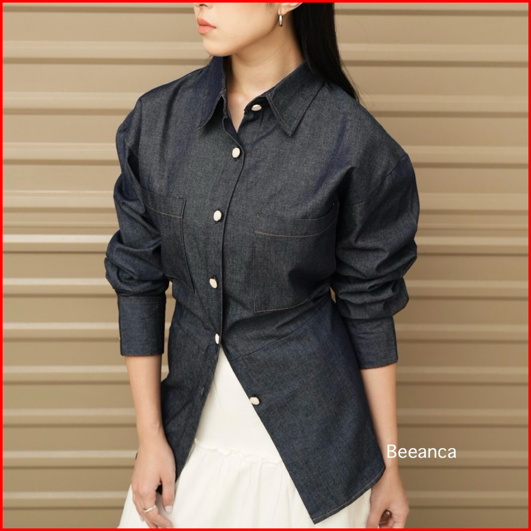 Beeanca - Alice Denim Blouse Atasan Wanita Denim Blouse Fitted Blouse Atasan Denim Blouse Korea Atasan Korea