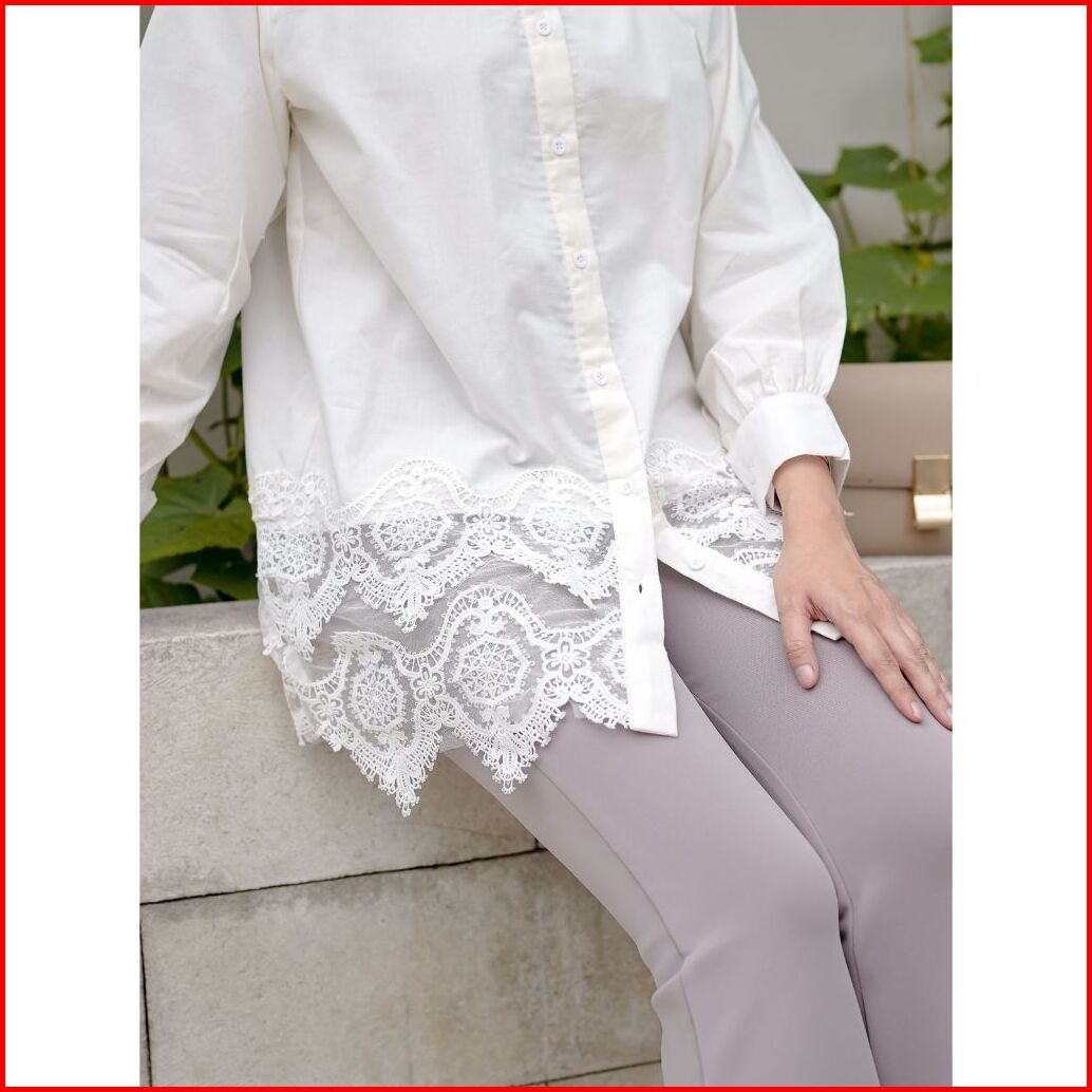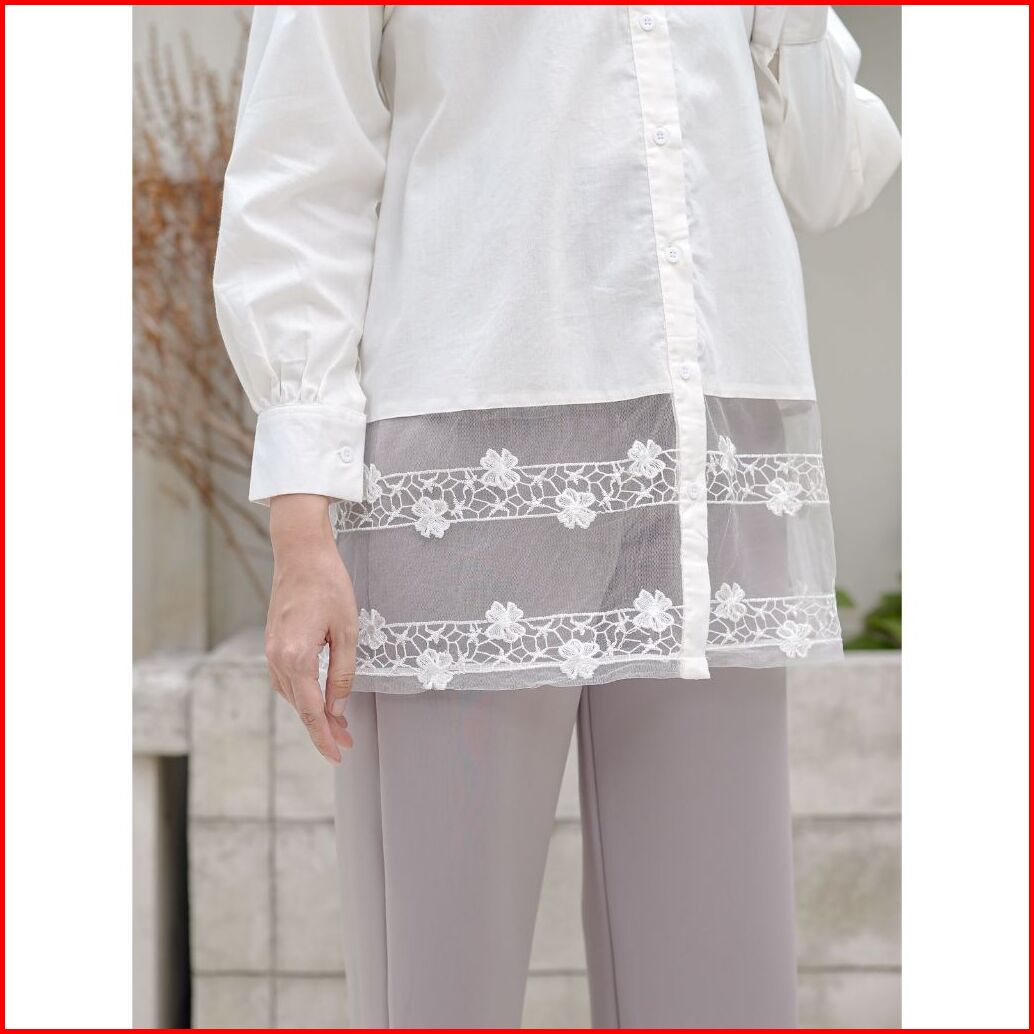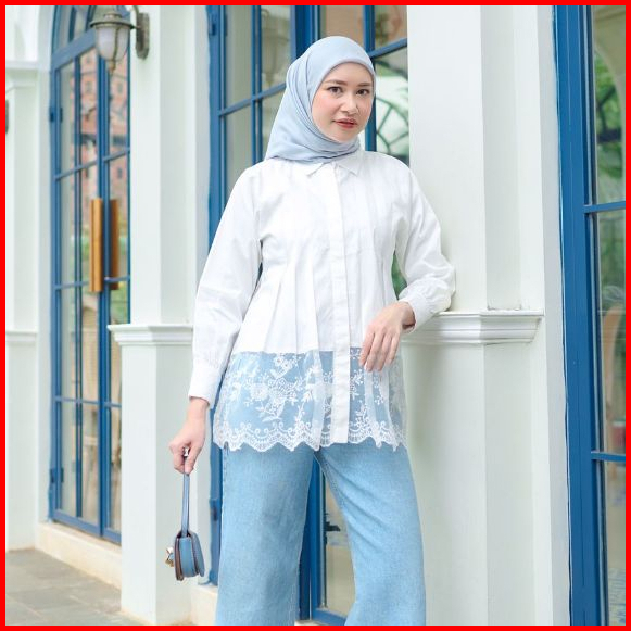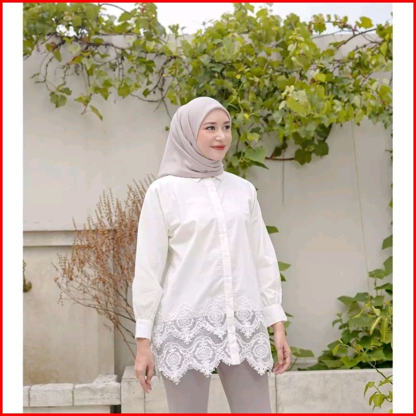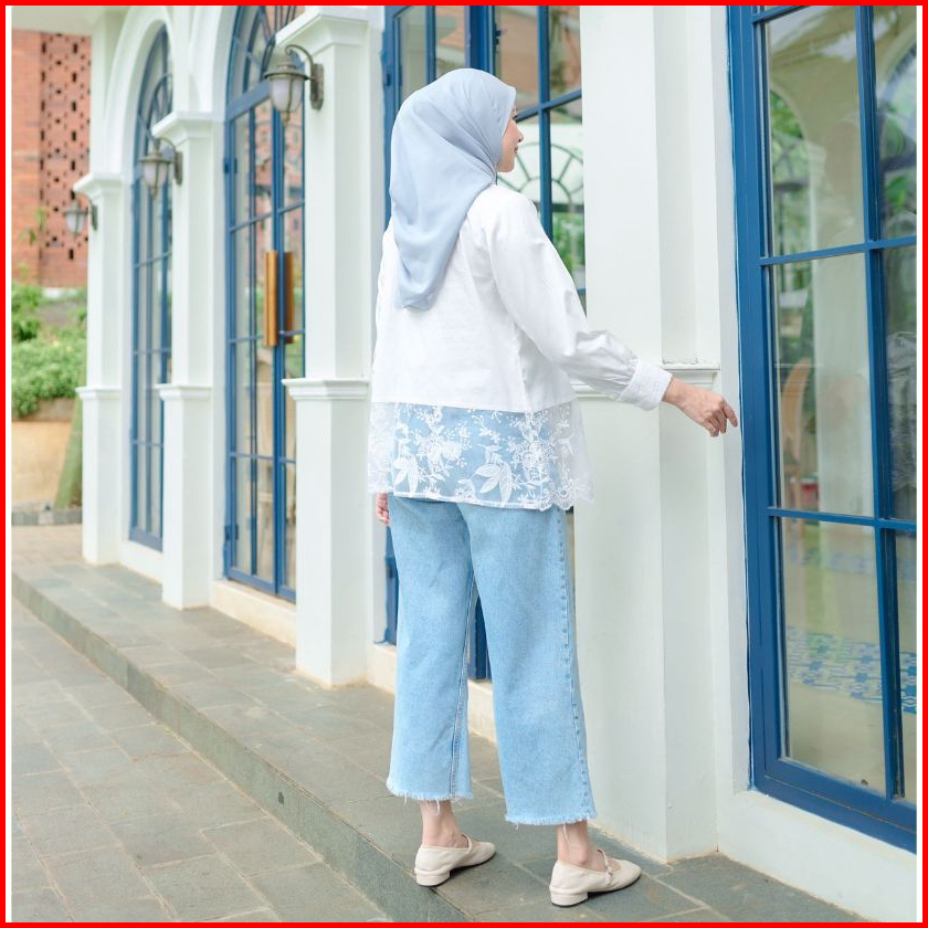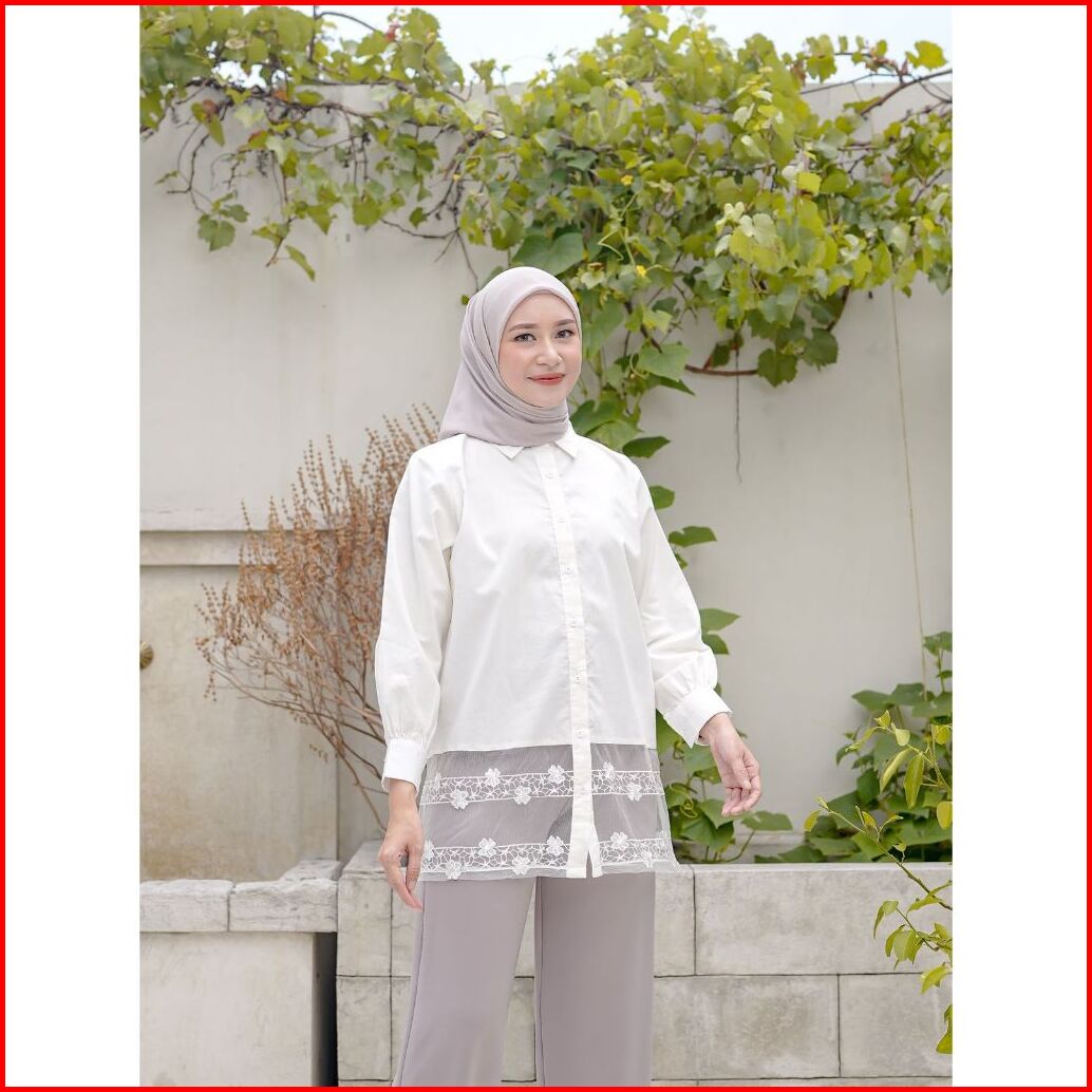 Kheva Mauza Nayaka Lace Shirt Atasan Kemeja Wanita Lengan Panjang Busui Poplin Brocade