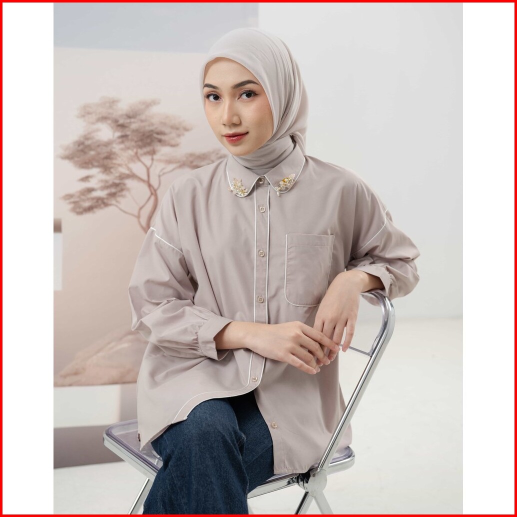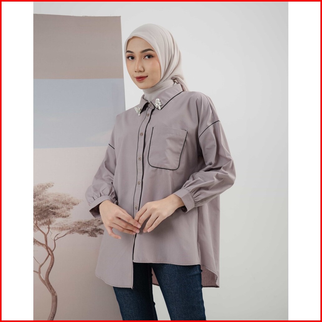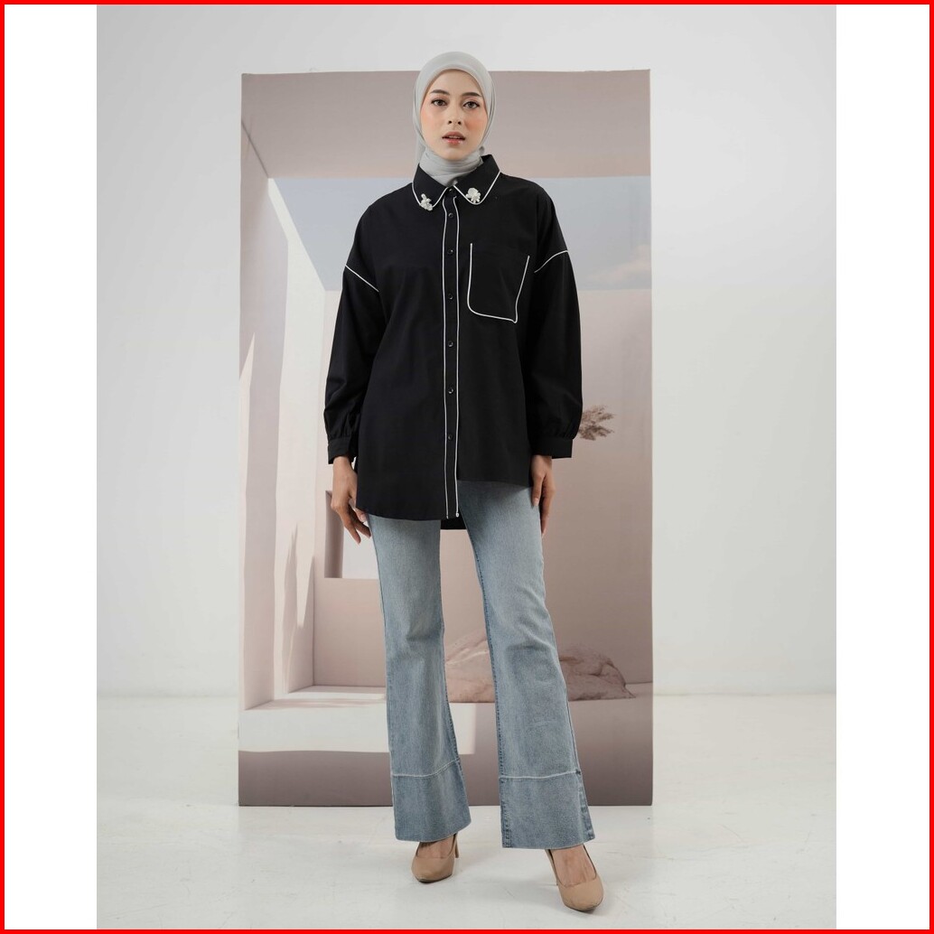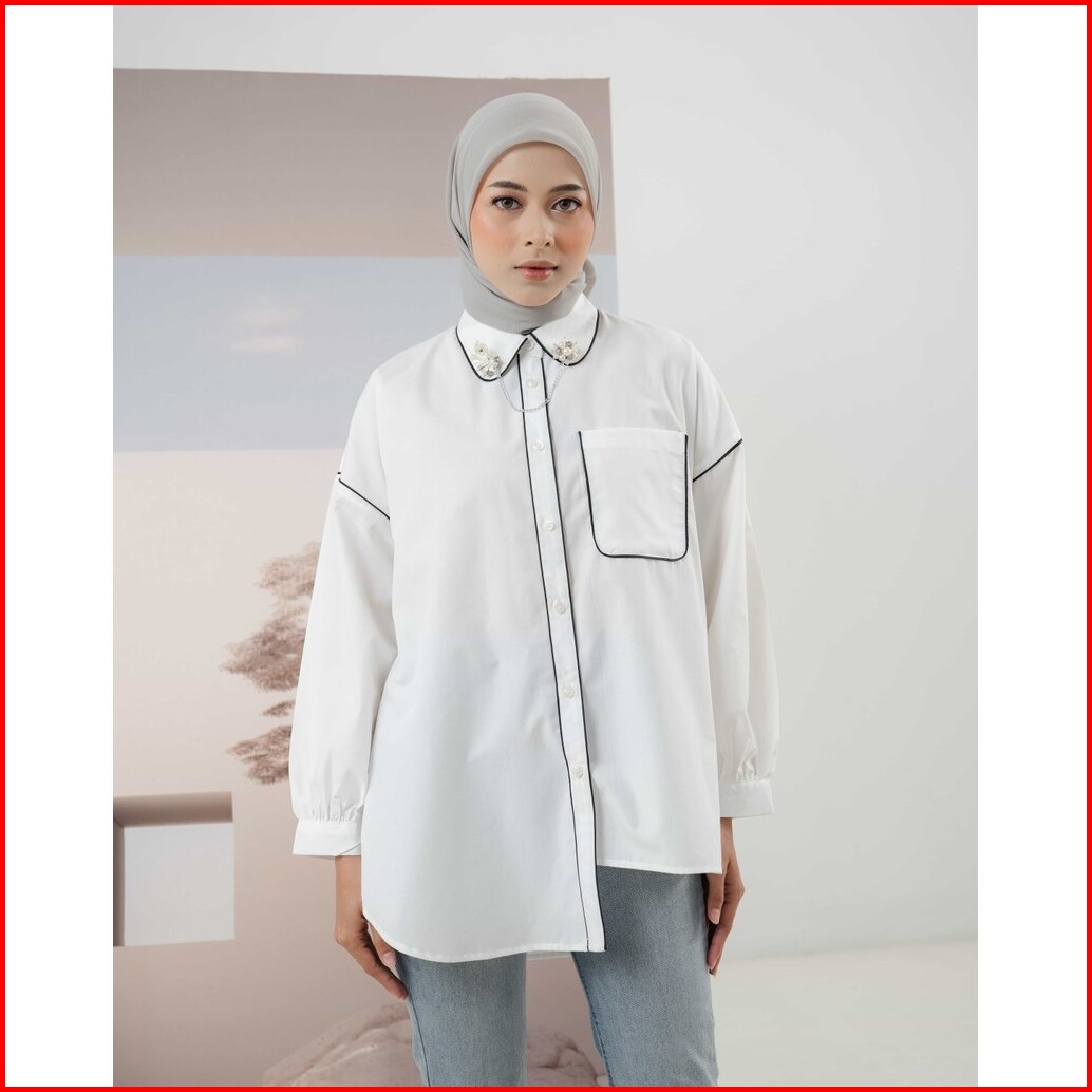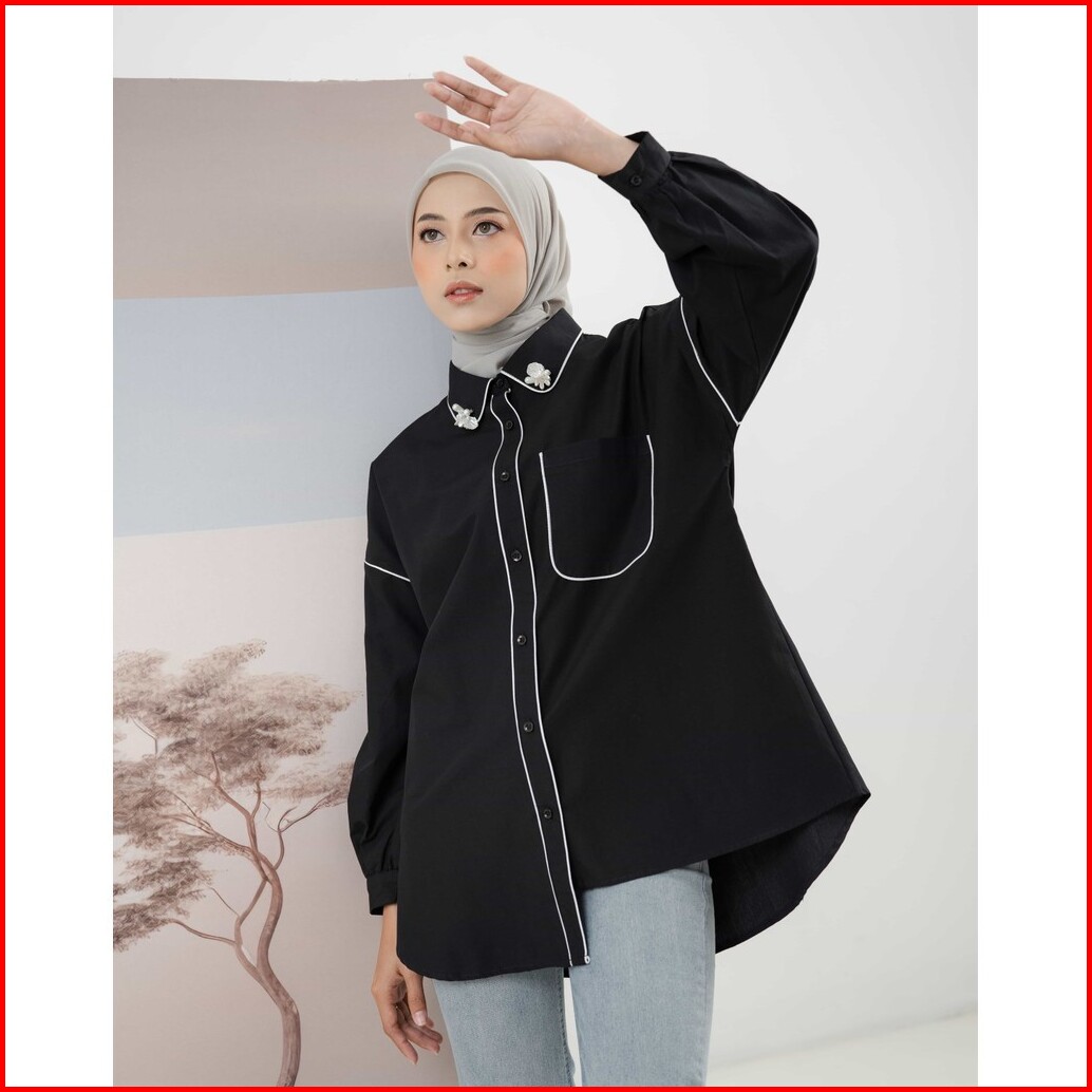 Mayoutfit Jenica Shirt Kemeja Basic Poplin Wanita Asimetris Aksen Stripe Bisban