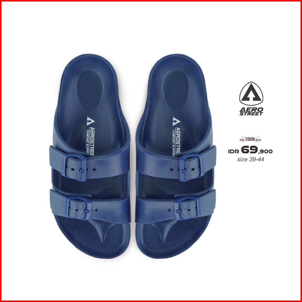 Aerostreet 39-44 Conifer Navy - Sandal Sendal Selop Slip On Casual Pria Wanita Aero Street 21baa0
