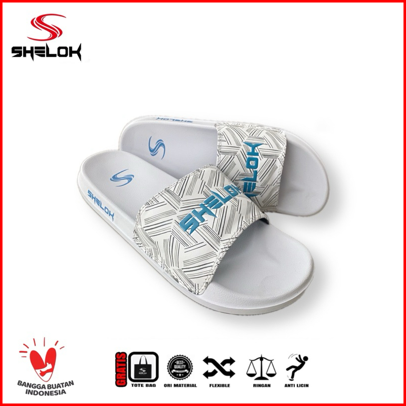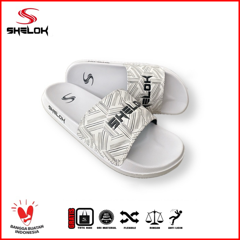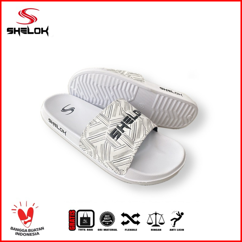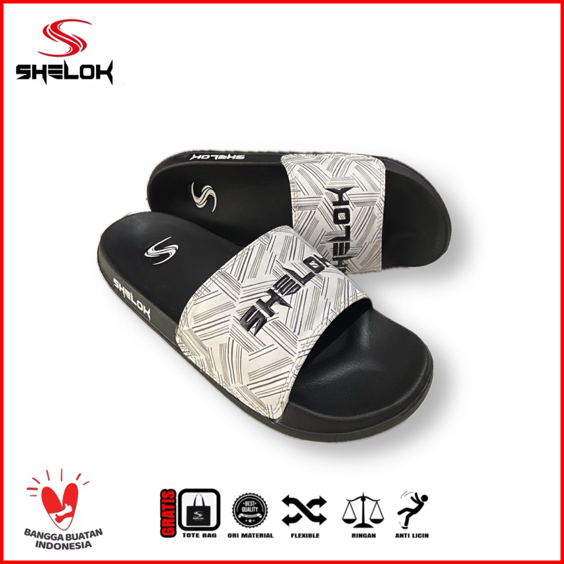 Shelok - Sandal Slip On Sandal Slop Pria Wanita Motif Garis Garis Printing Embos