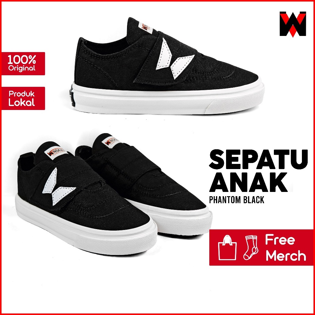 Winsketz - Sepatu Anak Sneakers Sekolah Hitam Laki Laki Perempuan Unisex Tk Sd Phantom Black Hitam