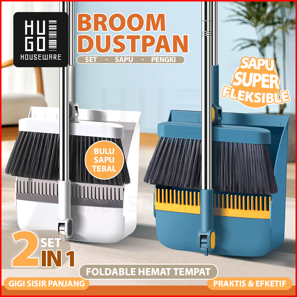 Hugo Set Sapu Pengki Alat Pembersih Lantai Broom Set Dustpan Sapu Lipat Praktis Sapu Lantai Pengki Set Multifungsi