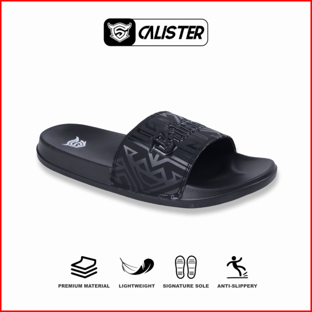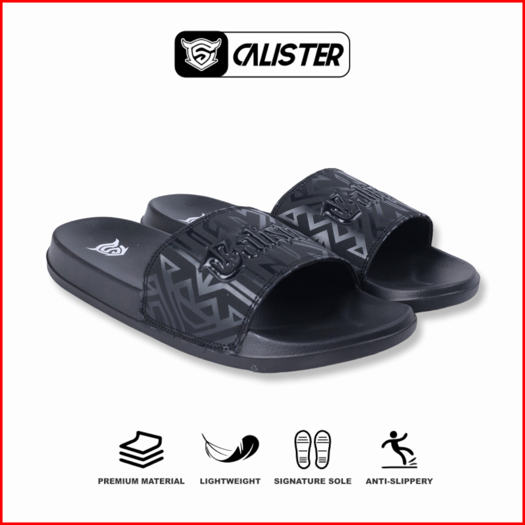 Calister - Sandal Pria Full Black Evolution Font