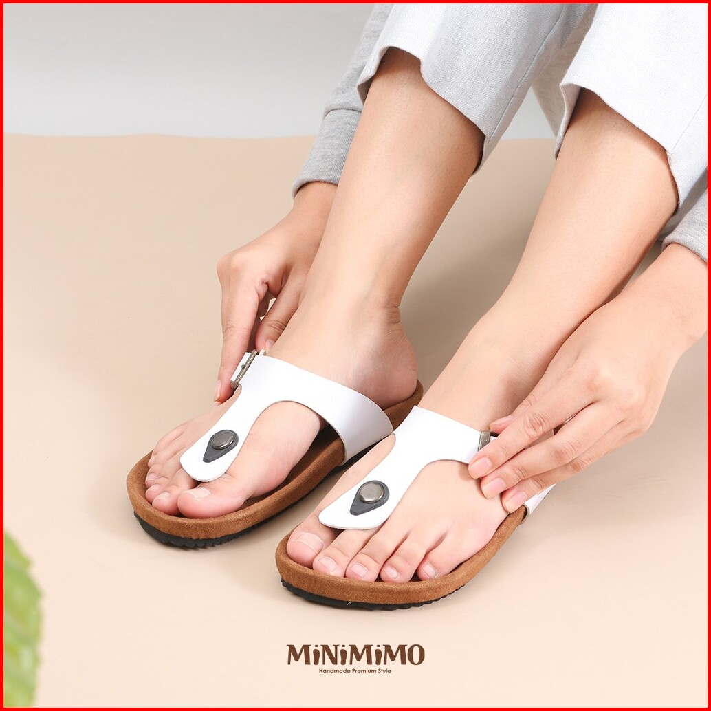 Minimimo Sandal Flat Kulit Casual Wanita Anti Slip Mf 004 White