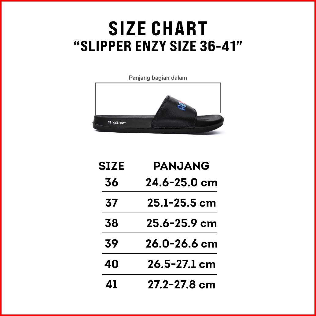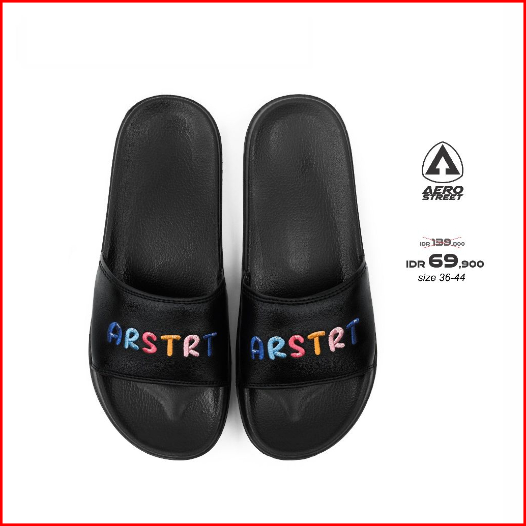 Aerostreet 36-41 Enzy Hitam Hitam - Sandal Slip On Pria Wanita Babaa