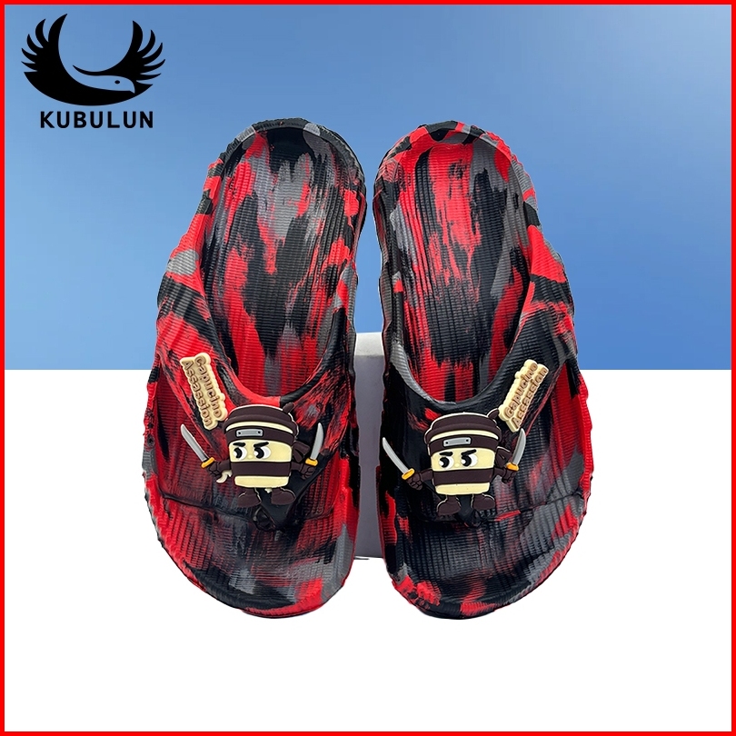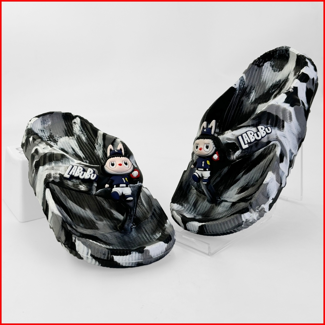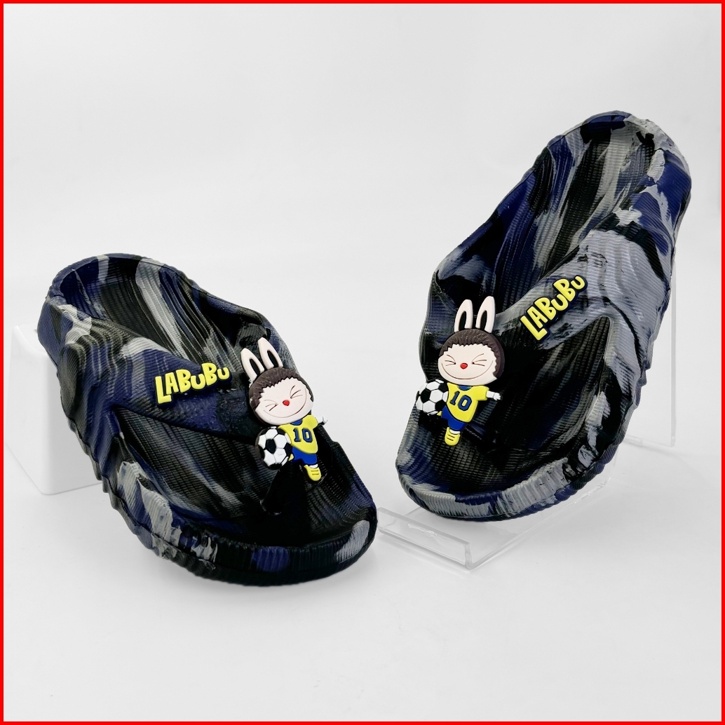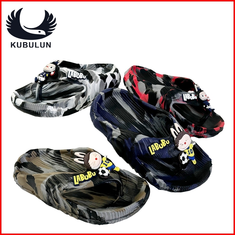 Kubulun Sandal Labubu Anak Laki Laki Tema Sporty Desain Camo Anti-slip Ukuran 24-35 Karet