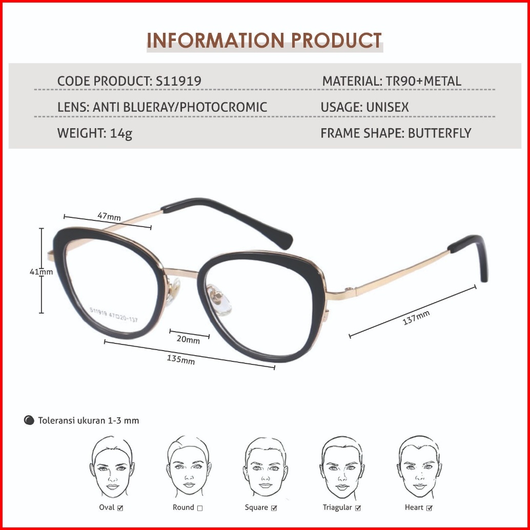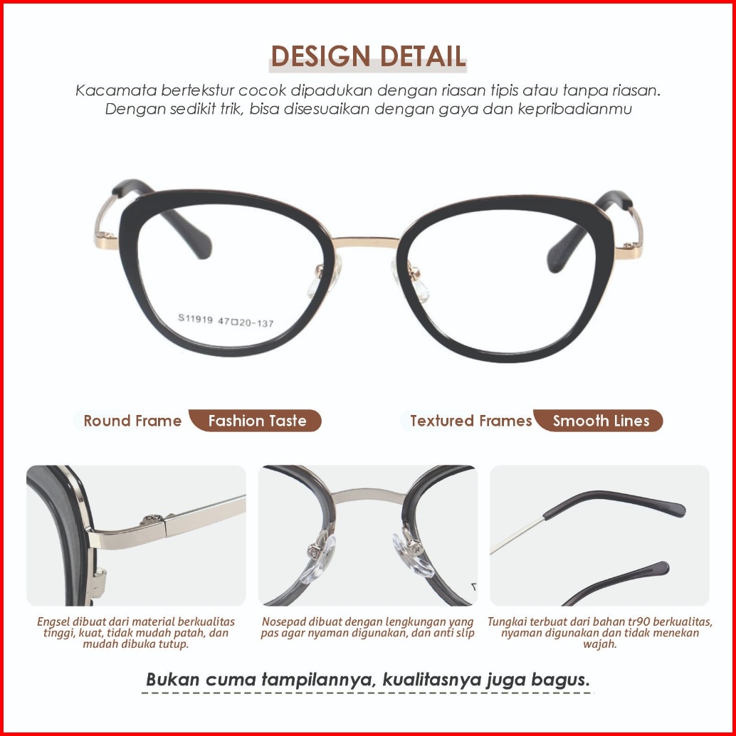 La Chapella Kacamata Wanita Model Cat Eye Photocromic Minus Anti Blueray Bluecromic Tr90 Metal S11919