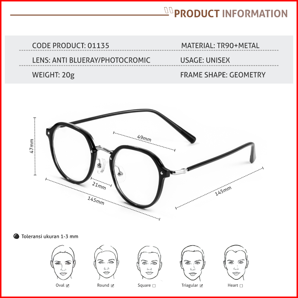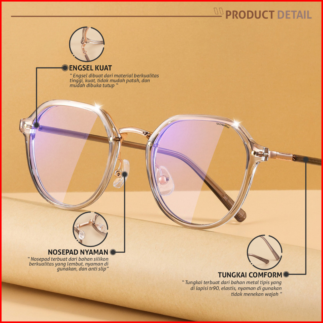 La Chapella - Kacamata Anti Radiasi Anti Blueray Photocromic Bluecromic Tr-90 Metal Geometri Wanita Modern Glasses 01135