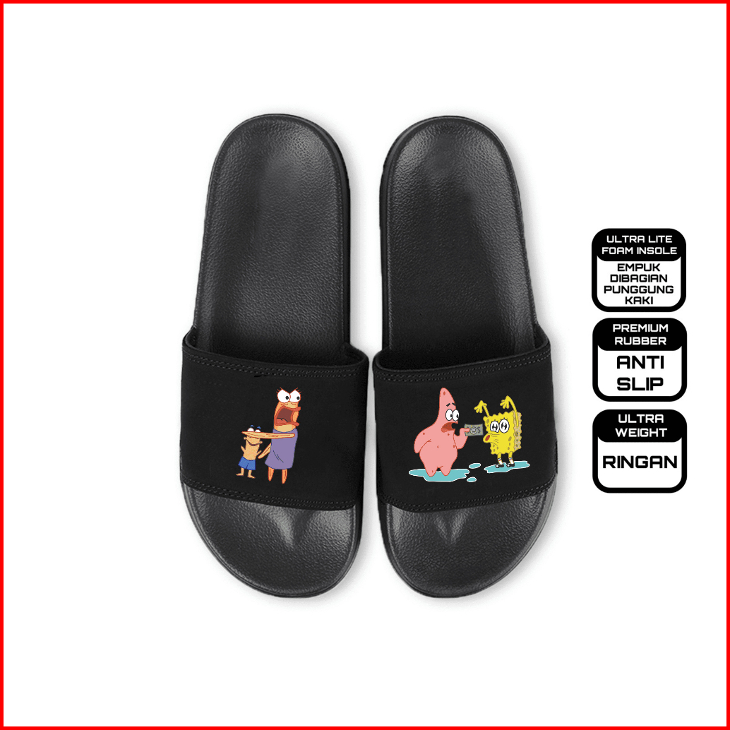 Sandal Slop Pria Wanita Anti Air Spongebob X Patrick Sendal Slide Karet Flip Flop Sandal Slip On Kekinian