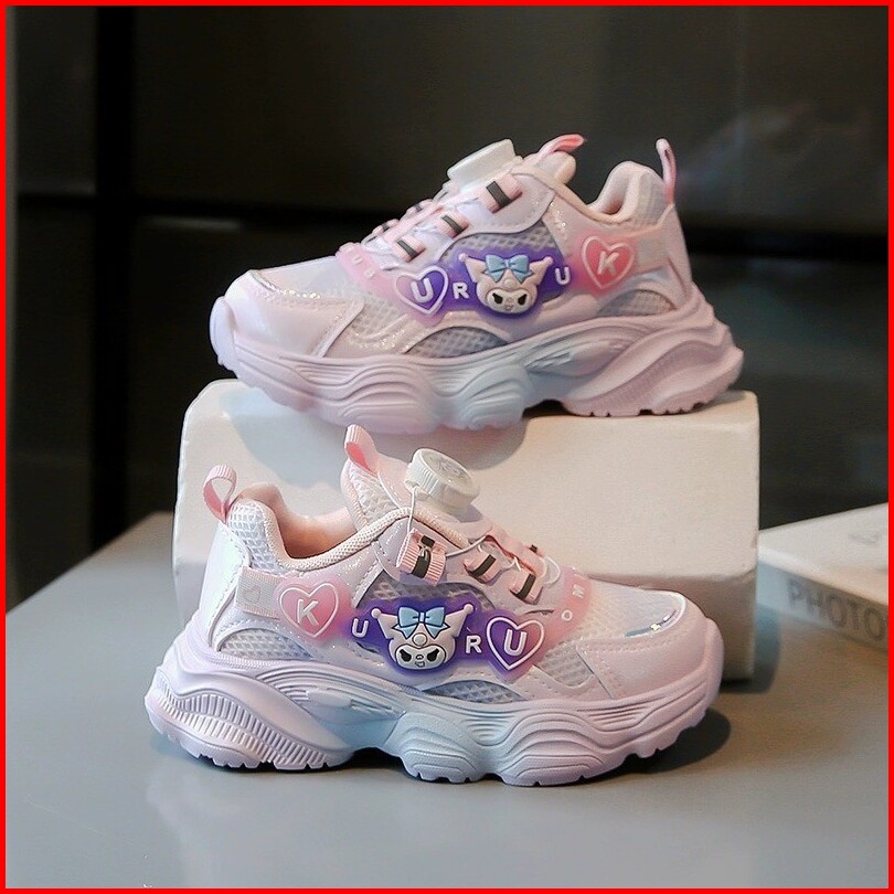 Lvr Eunbi Free Box Size 26-34 Sepatu Anak Perempuan Kuromi Led Sneakers Casual Anak Terbaru Lv0678