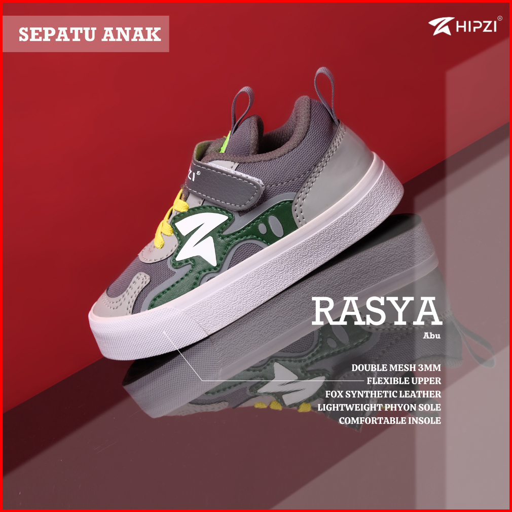 Hipzi - Sepatu Anak Rasya Kids Warna Abu-abu Size 26-35 Sekolah Laki Laki Perempuan Olahraga Terbaru