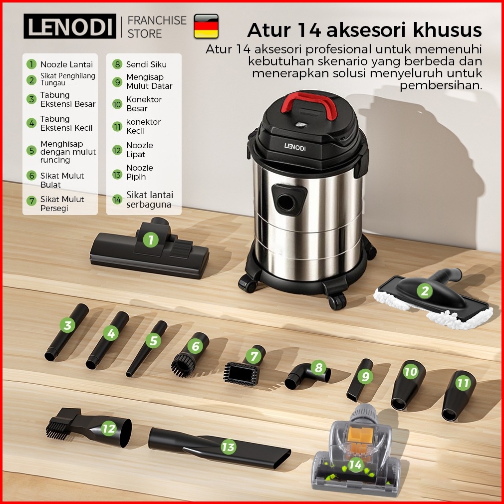 Lenodi Vacuum Cleaner 20l 2000w 3in1 Vakum Air Hisap Blower Sedot Debu Basah Kering Vacum Blower Wet Dry Penyedot Debu K