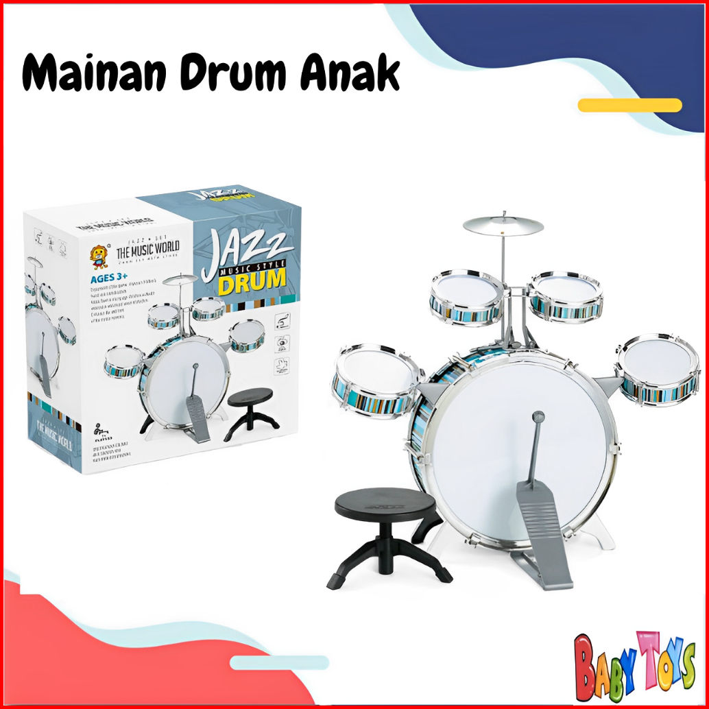 Babytoys Mainan Drum Anak Set Jumbo Jazz Besar Edukasi Anak Musik Laki Laki Pukul Alat Musik Bangku
