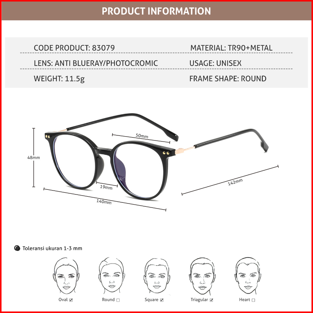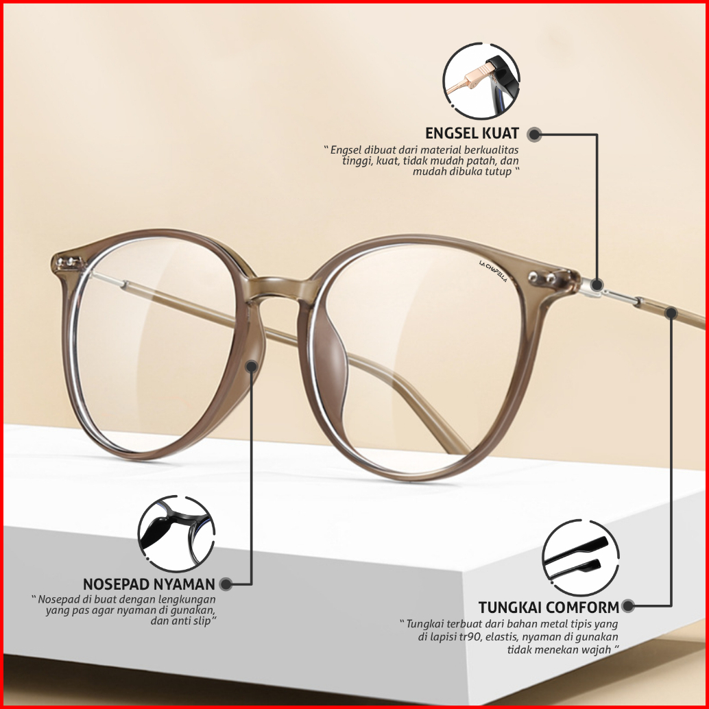 La Chapella Kacamata Anti Blueray Anti Radiasi Photocromic Bluecromic Kotak Tr-90 Metal Fashion Style Eyeglasses 83079