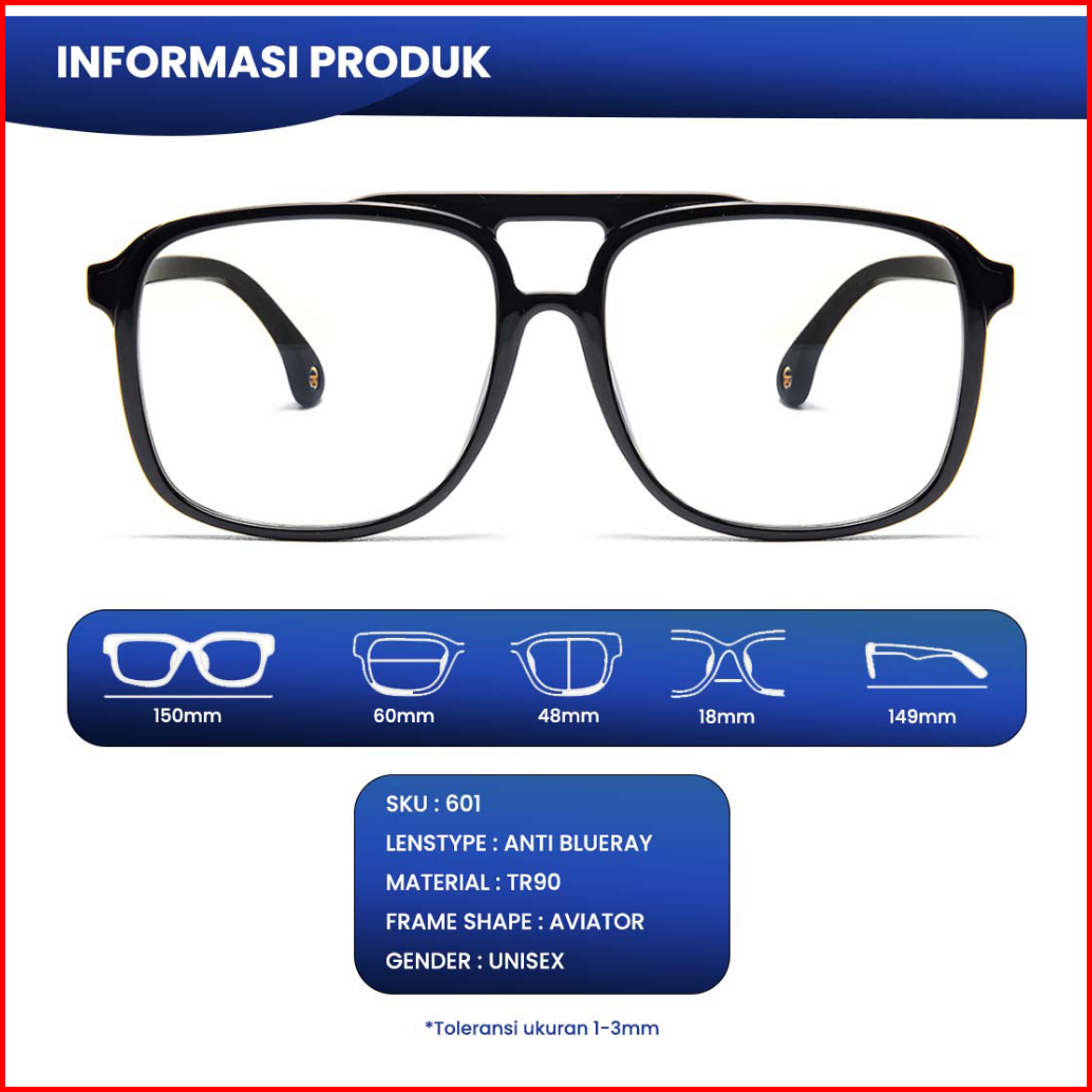 Iooi Eyewear - Kacamata Aviator Tr 90 Lensa Minus Anti Radiasi Blueray Pria Wanita 601