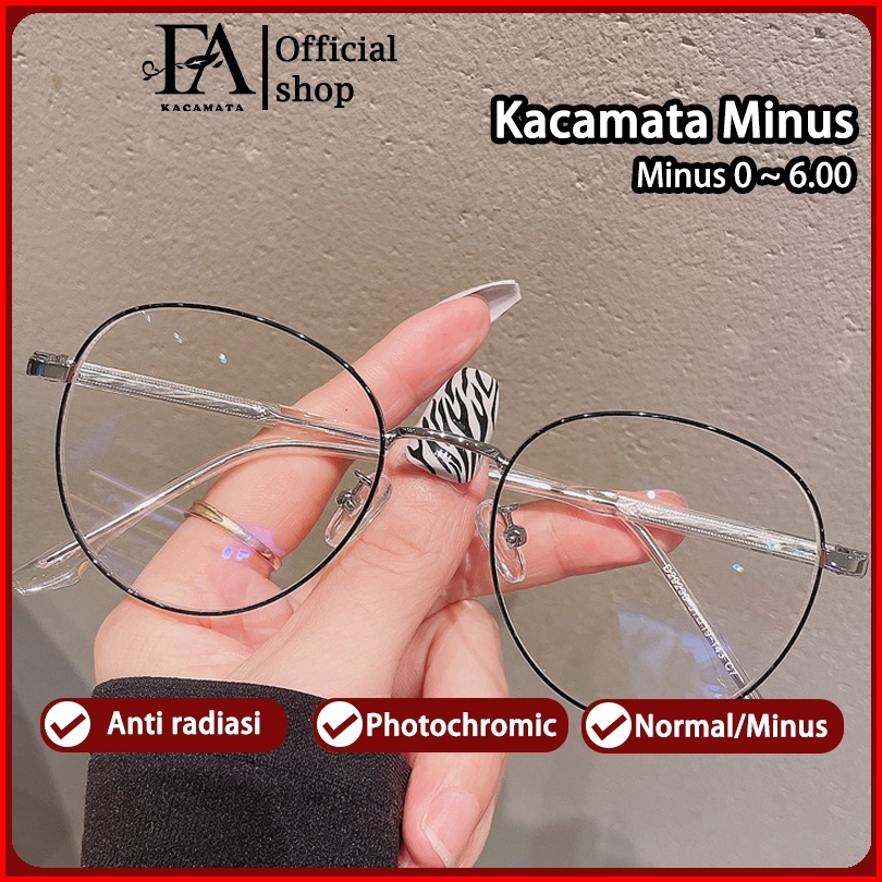 Fomamata Kacamata Minus Photocromic Wanita Pria Bluecromic Fashion Round Anti Radiasi Blueray Frame