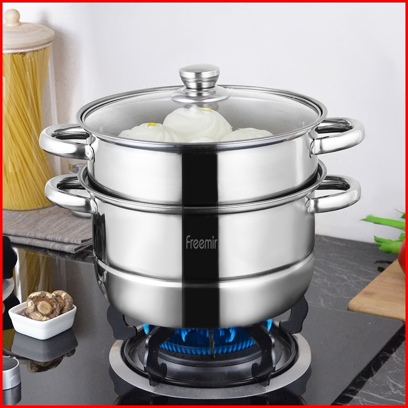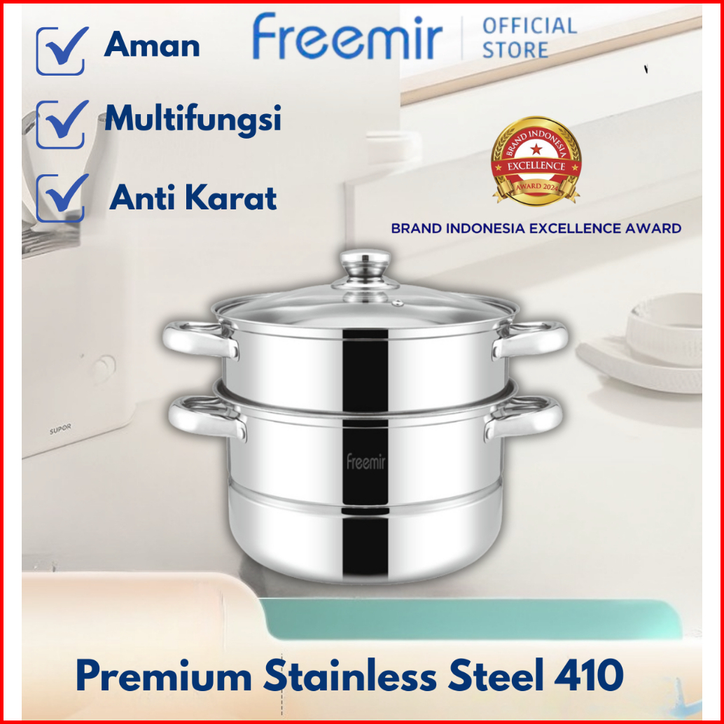 Freemir Panci Kukus 2 Susun Tutup Kaca Panci Serbaguna Stainles Steel Anti Karat