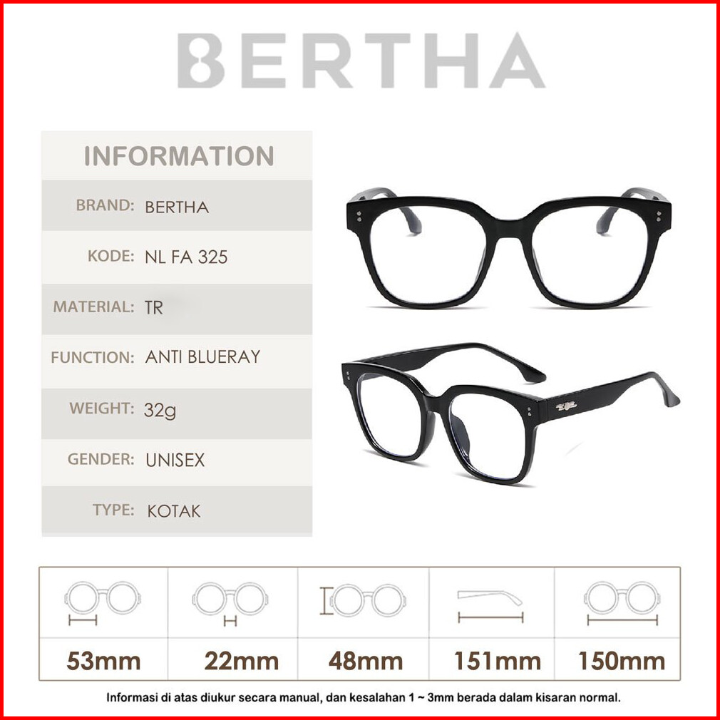 Bertha Kacamata Antiradiasi Blueray Sinar Biru Fashion Pria Wanita Bold Bisa Minus Antiradiasi Blueray Photocromic 325 G