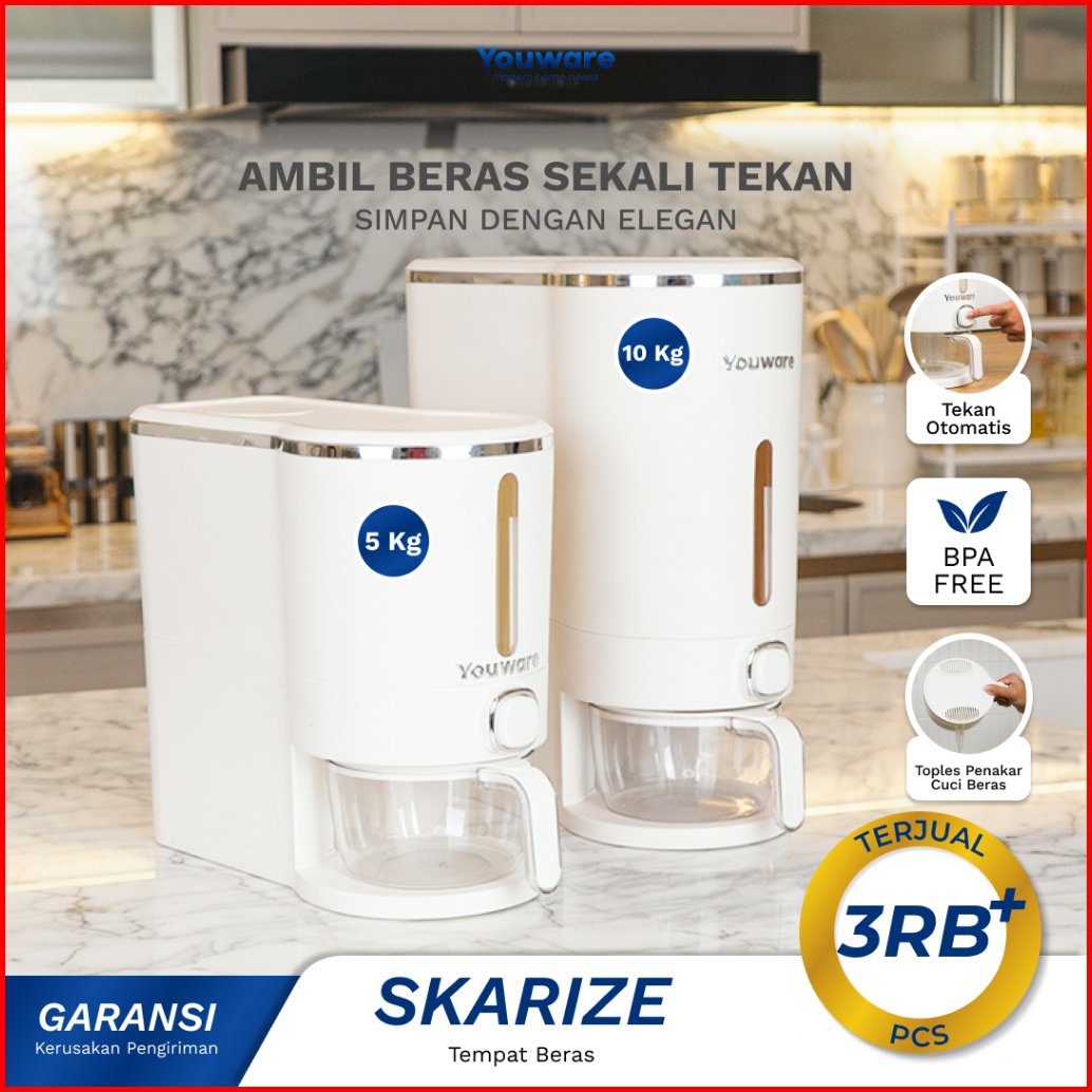 Youware - Skarize Dispenser Tempat Penyimpanan Beras Anti Kutu Dan Serangga Kapasitas 5-10kg