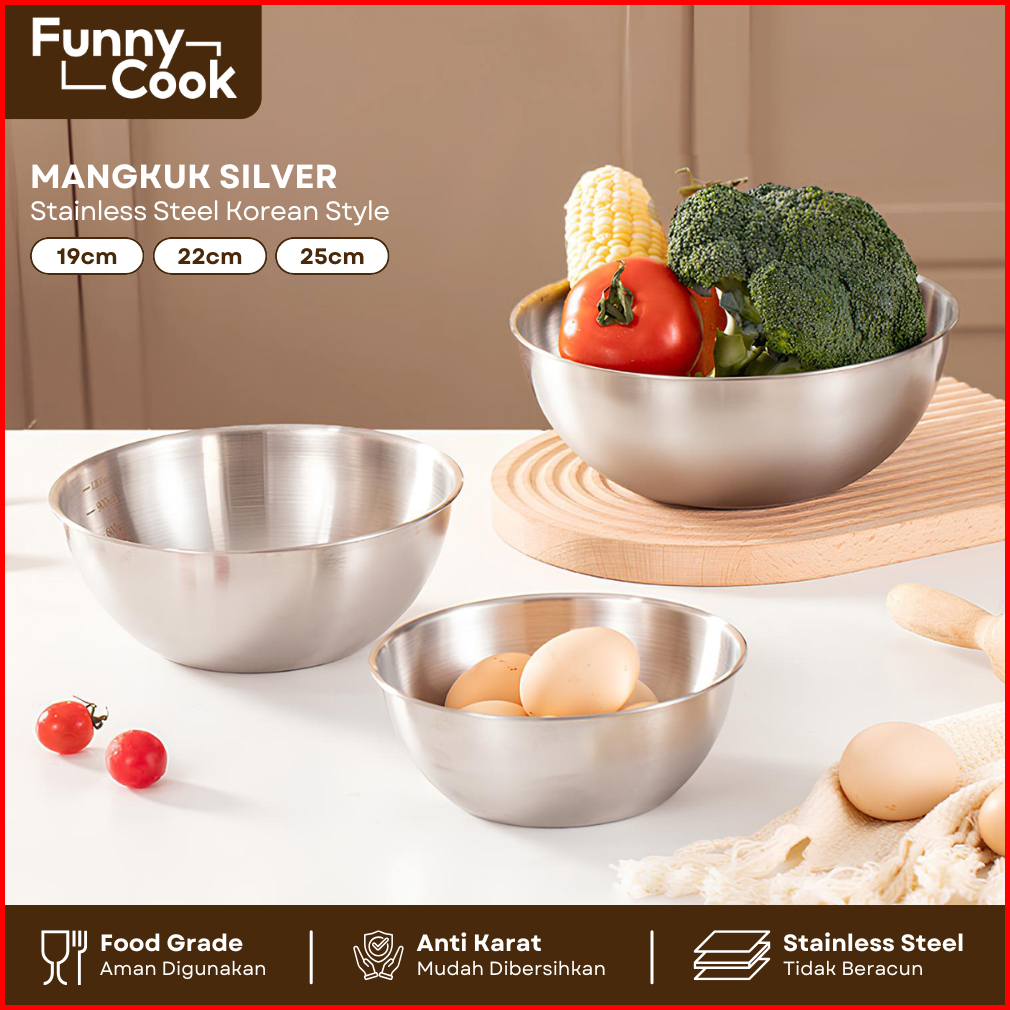 Funnycook 3 Pcs 19cm-25cm Baskom Tebal Mixing Bowl Super Dalam