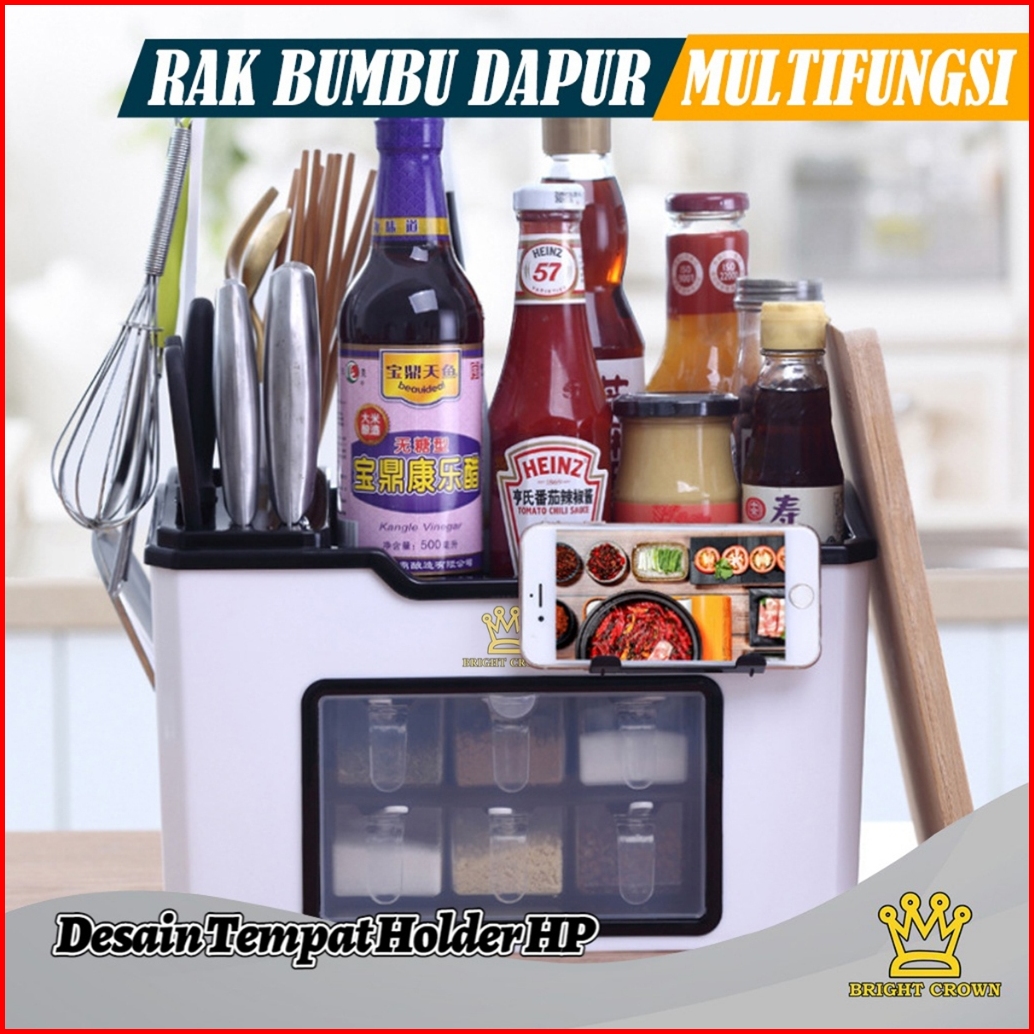 Bright Crown Rak Bumbu Dapur All In 1 6laci Free 6pcs Sendok Bumbu Tempat Pisau Tempat Penyimpanan