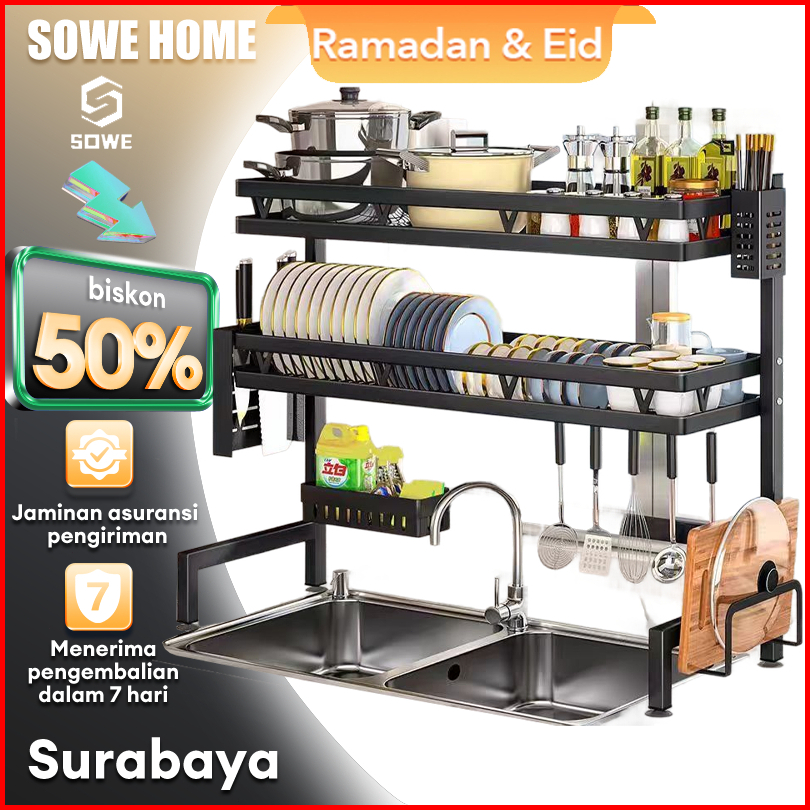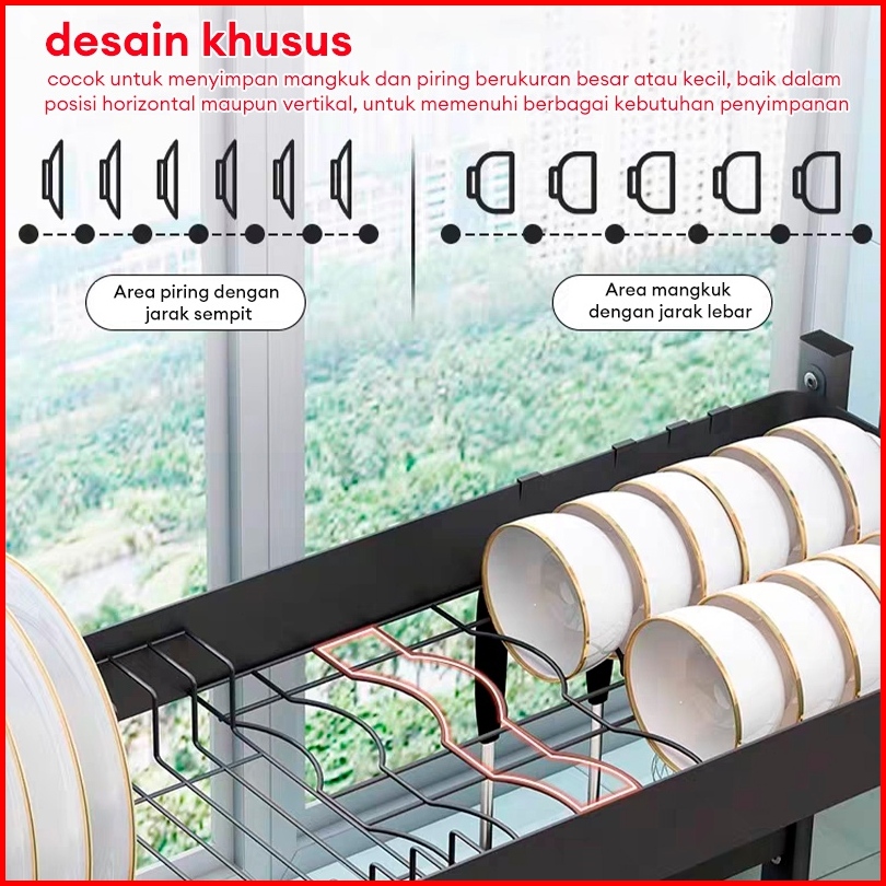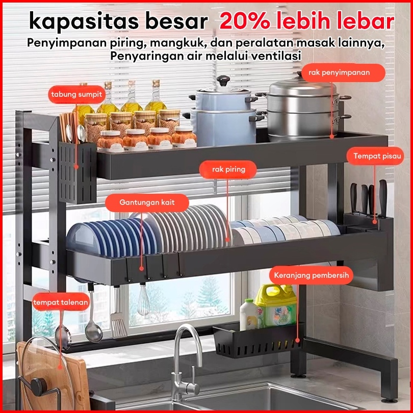 Rak Piring Wastafel Stainless Steel Kapasitas Besar 20 Lebih Lebar - Rak Pengering Cuci Piring Penyimpanan Dapur