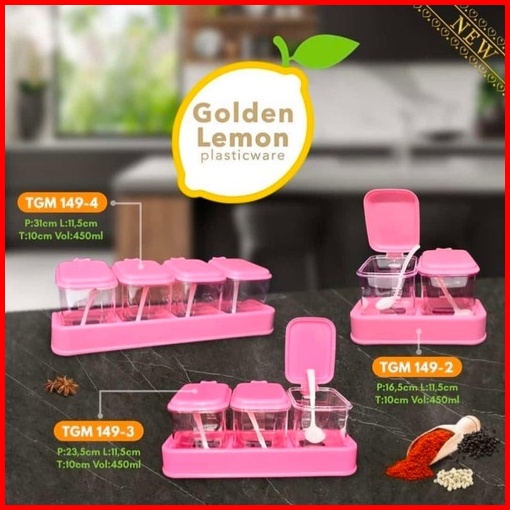 Tempat Bumbu Dapur Isi 2 3 4 Tgm 149-2 3 4 Golden Lemon Pink Bpa Free - Isi 4