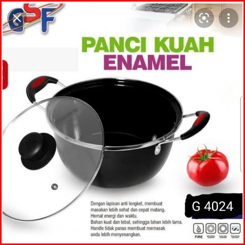 Panci Kuah Gsf 4024 24cm Panci Kuah Tutup Kaca Enamel Gsf Free Bubble Warp Dan Fragile