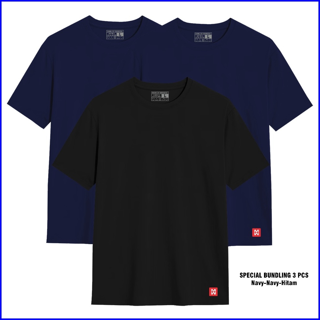 Mawa.co - Bundling 3 Pcs Kaos Polos Navy-navy-hitam Lengan Pendek Cotton 30s